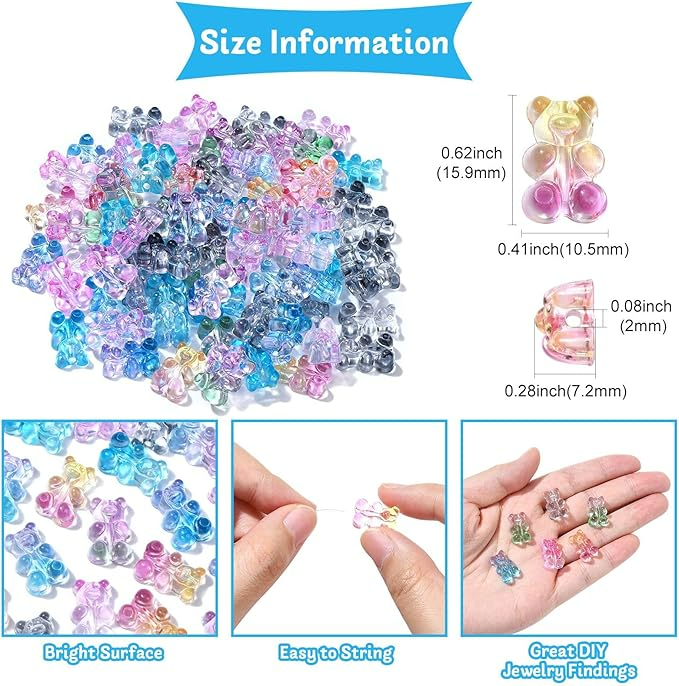 Idealne, jeśli robisz bransoletki i inne wyroby biżuterii hand made, zwłaszcza te personalizowane. Koraliki są wykonane z trwałego akrylu, nie tracą koloru. Są świetne do wykonania breloków, zawieszek i zakładek do książek. Fajnie wyglądają w bransoletkach z koralików fimo katsuki oraz do koralików literki. Uwaga, otwór przechodzi pionowo przez środek misia (wzdłuż).