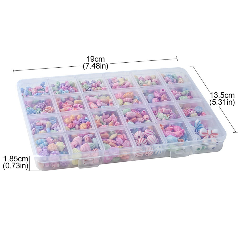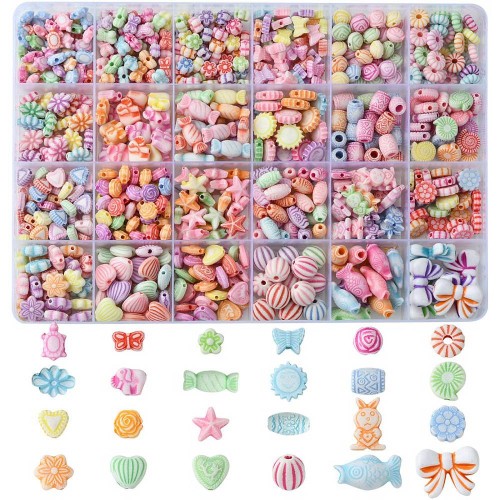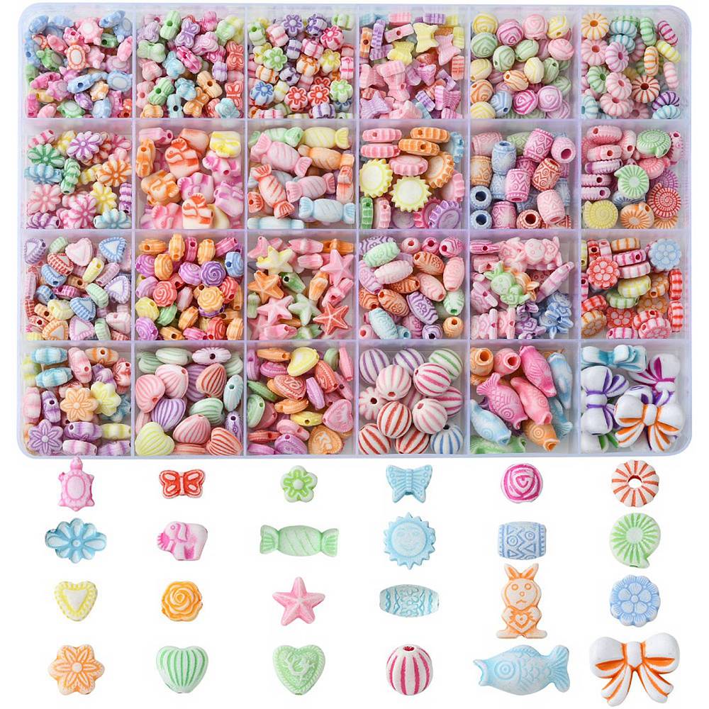 Koraliki akrylowe, 702 sztuki w miksie kolorów i wzorów, w praktycznym pudełku z przegródkami.