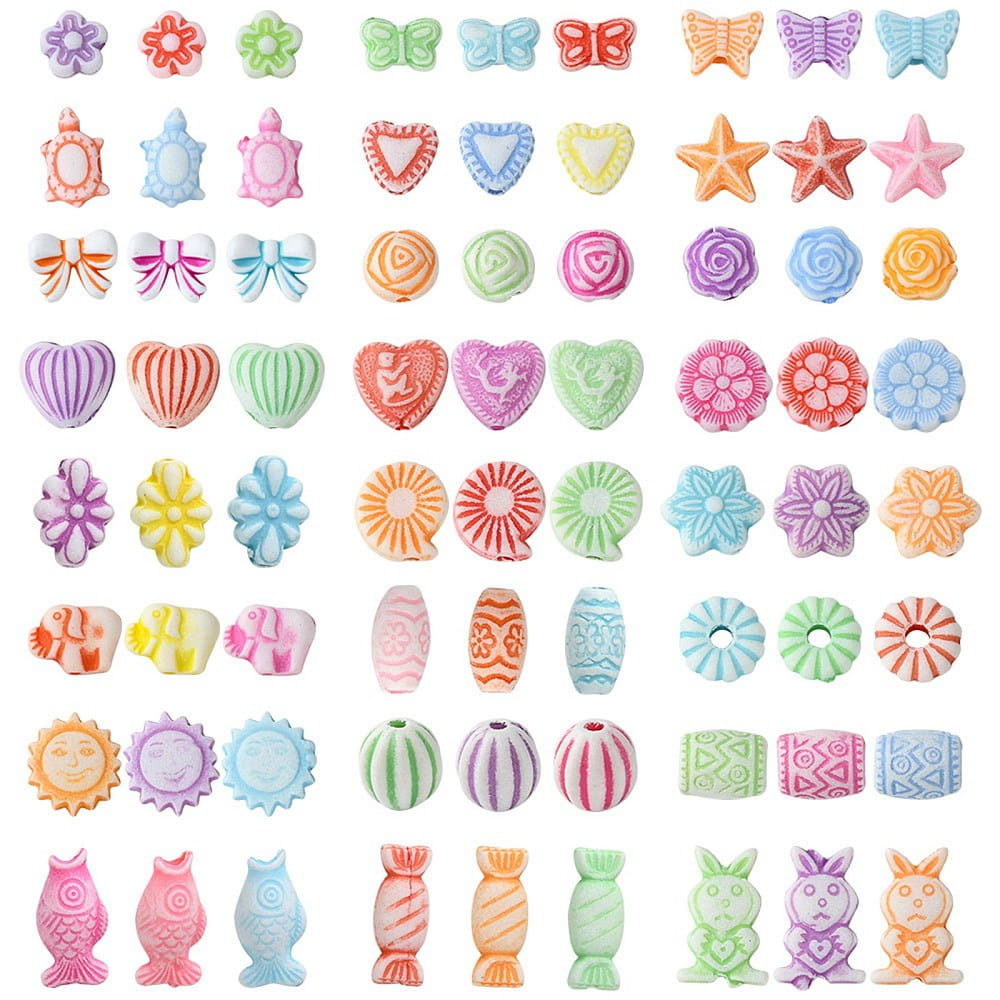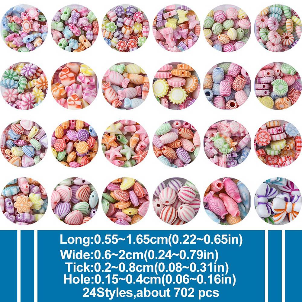 W opakowaniu znajduje się aż 700 koralików, różne wzory i kolory, styl boho. 24 różne wzory kształtów. Idealne, jeśli robisz bransoletki i inne wyroby biżuterii hand made, zwłaszcza te personalizowane. Koraliki są wykonane z trwałego akrylu, nie tracą koloru. Są świetne do wykonania breloków, zawieszek i zakładek do książek. Fajnie wyglądają w bransoletkach z koralików fimo katsuki oraz do koralików literki.