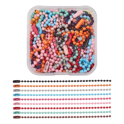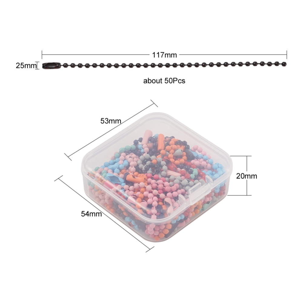 BOX1 Zestaw łańcuszek kulkowy z zapięciem 2.5mm 12cm 50szt mix w pudełku