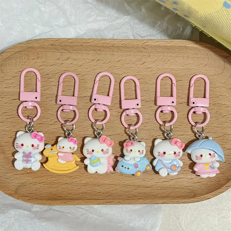 Piękny brelok z karabinkiem w różowym kolorze, ozdobiony zawieszką z Hello Kitty. 1 sztuka.