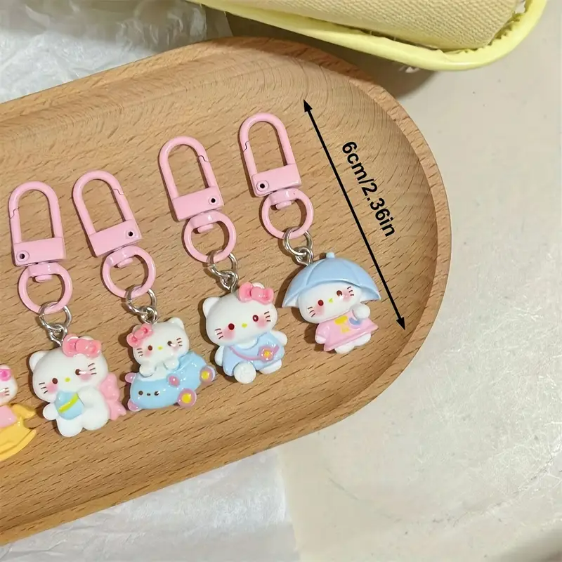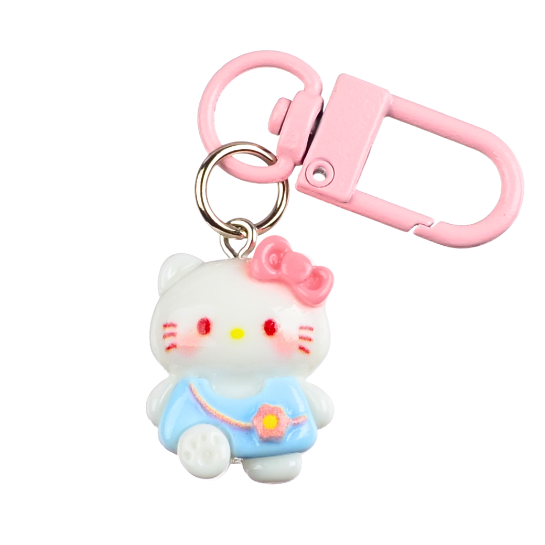 Karabinek jest metalowy, a postać Hello Kitty z akrylowej żywicy. Płaski spód.