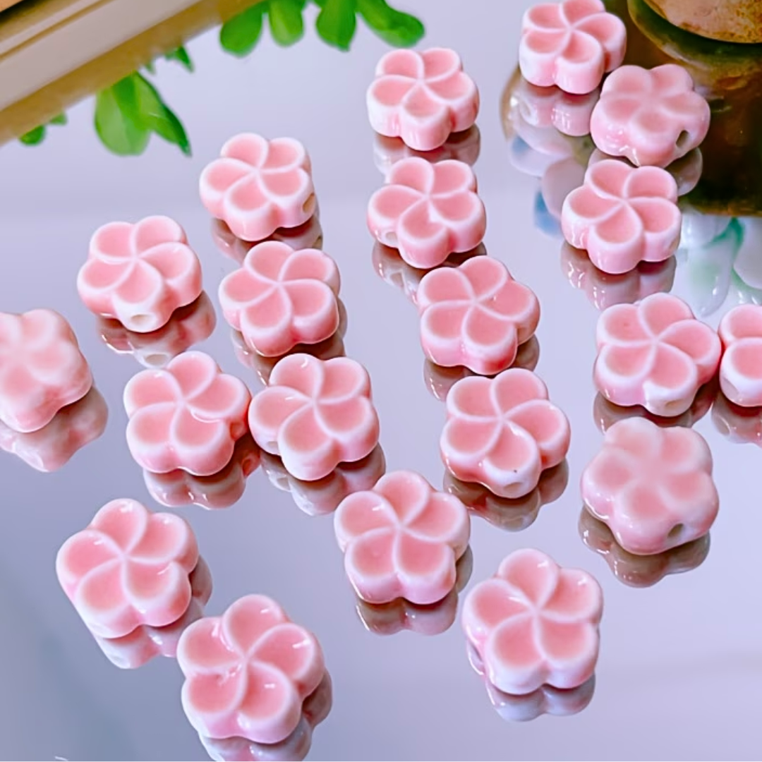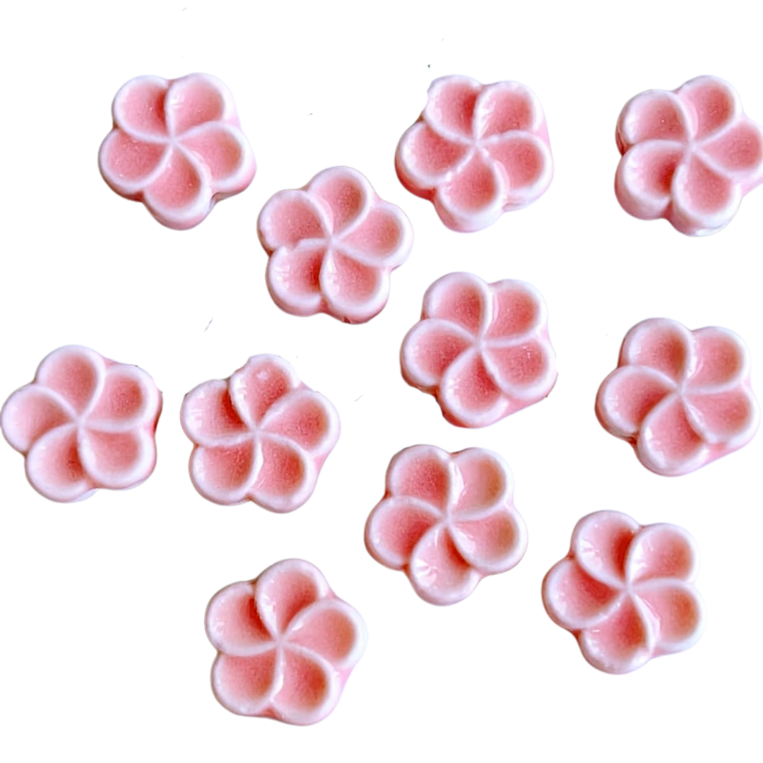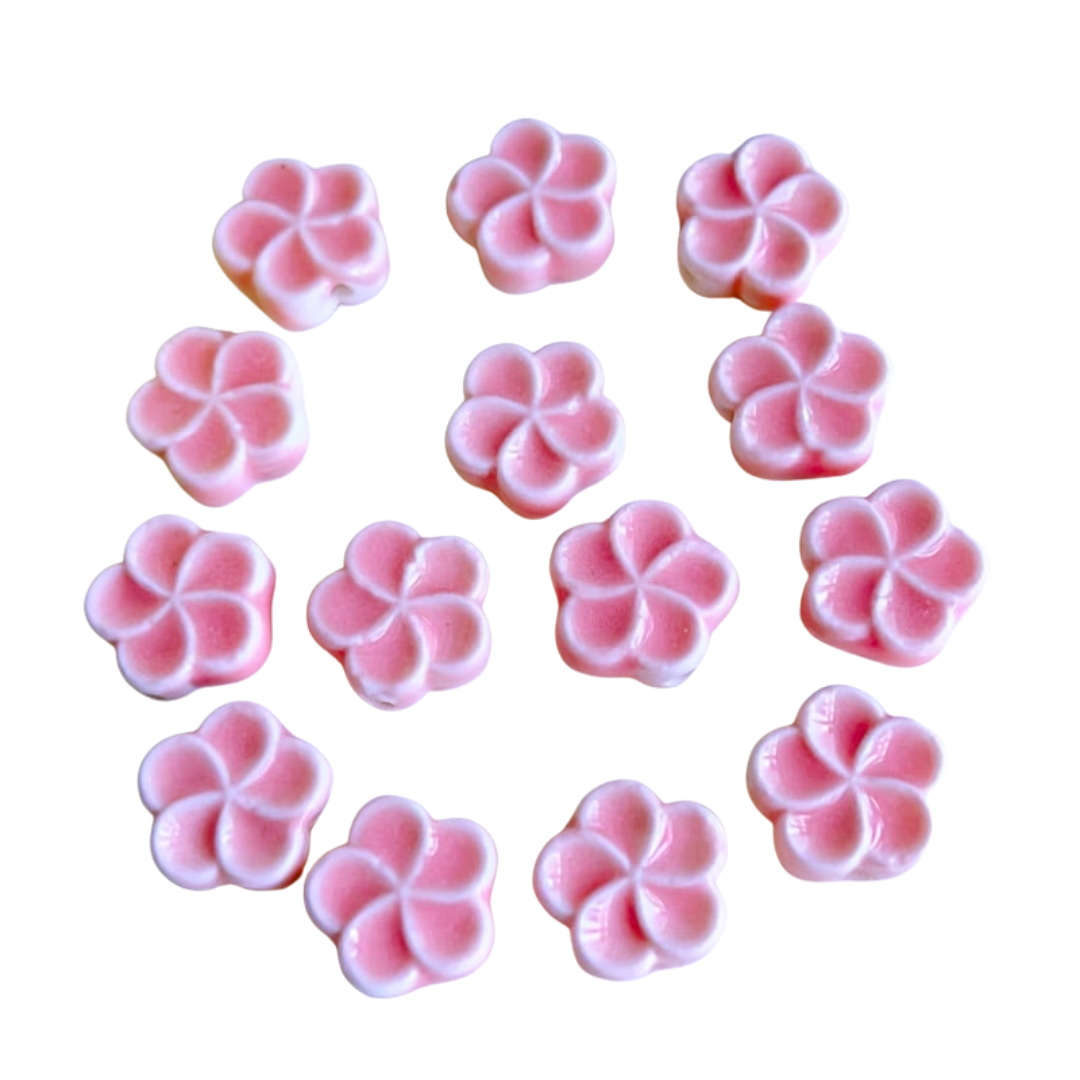 CER1 Koraliki kwiatek kwiatuszek ceramiczne wypalane emalia hand made 2szt róż
