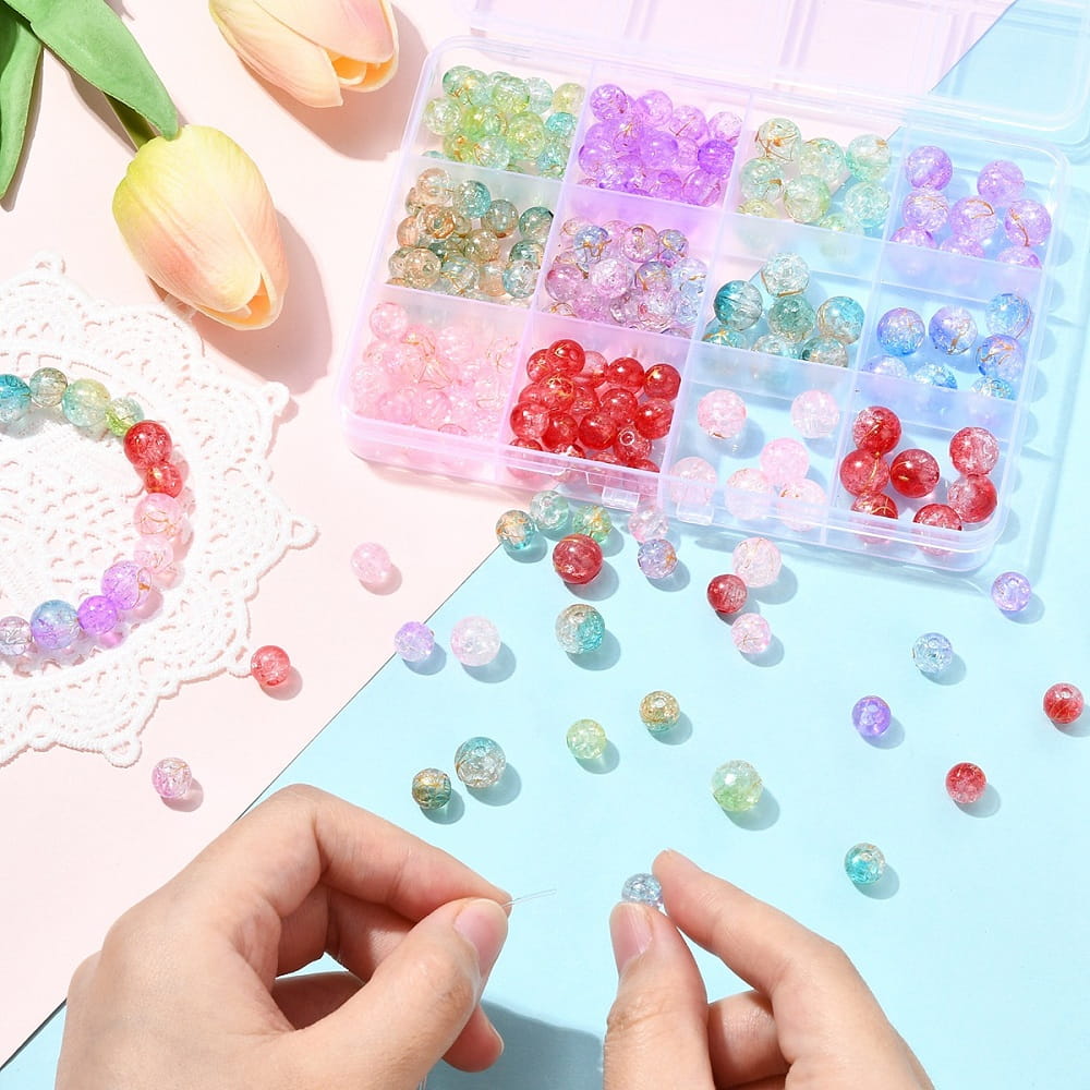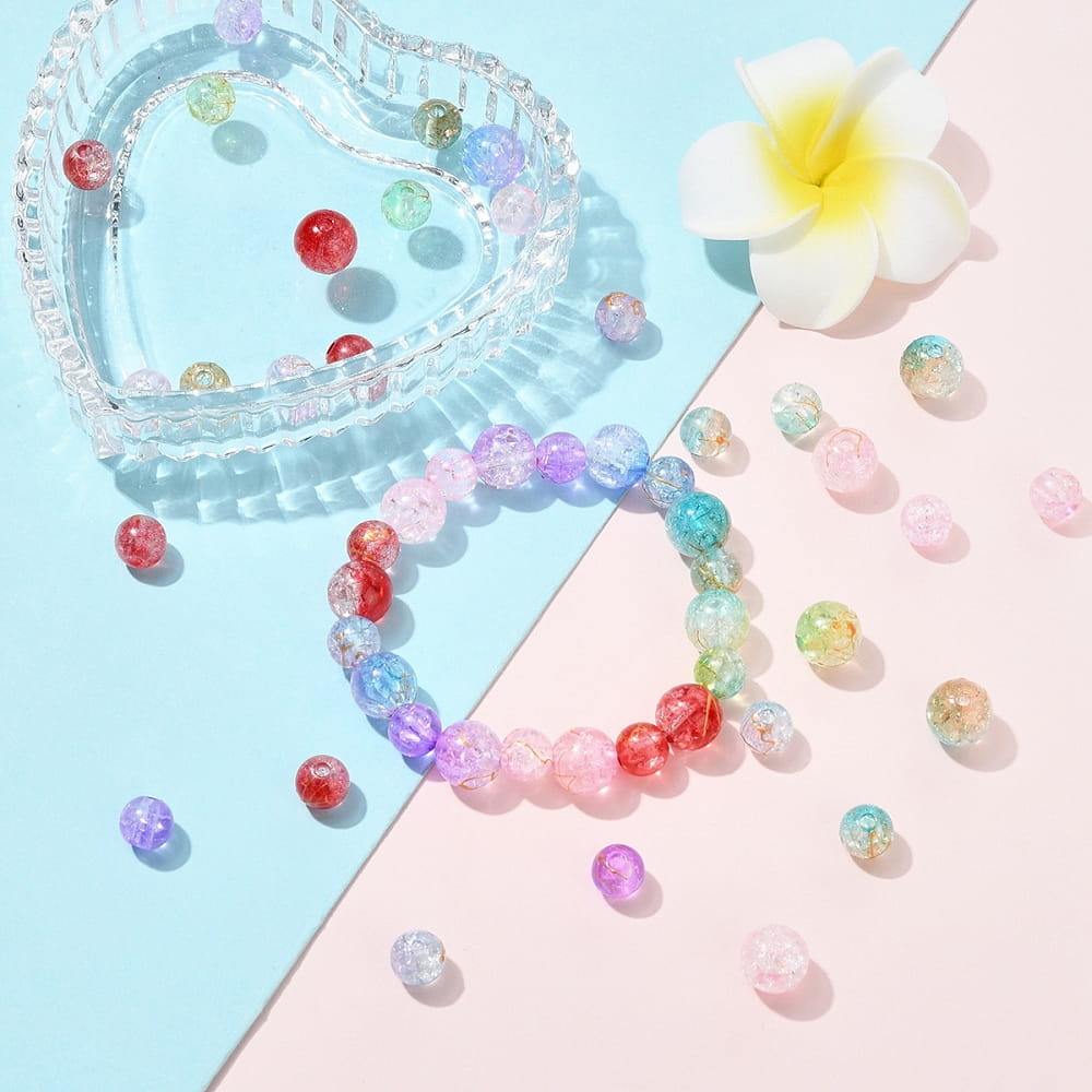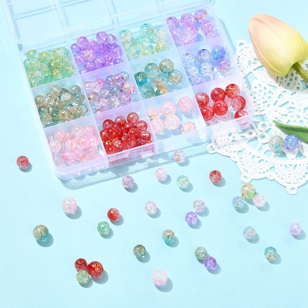 CRA4 Zestaw koraliki crackle pękane kule kulki akrylowe miks kolorów 210szt box