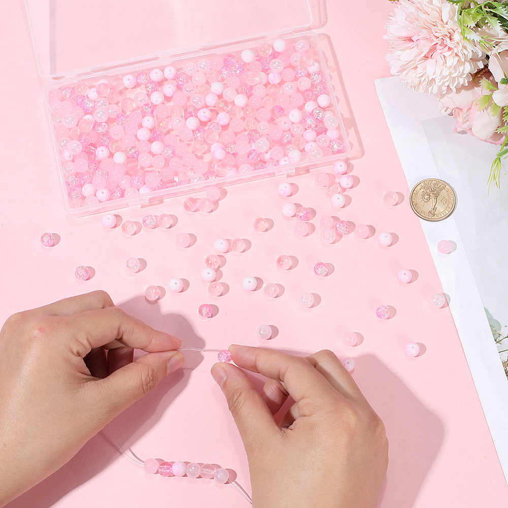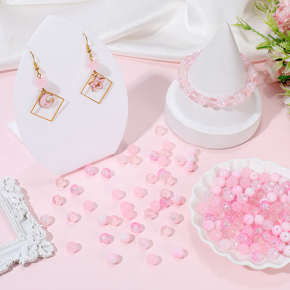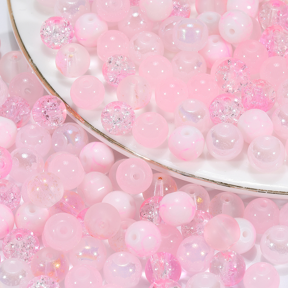CRA7 Koraliki crackle pękane marmurek kule 8mm kulki szklane róż mix 50szt