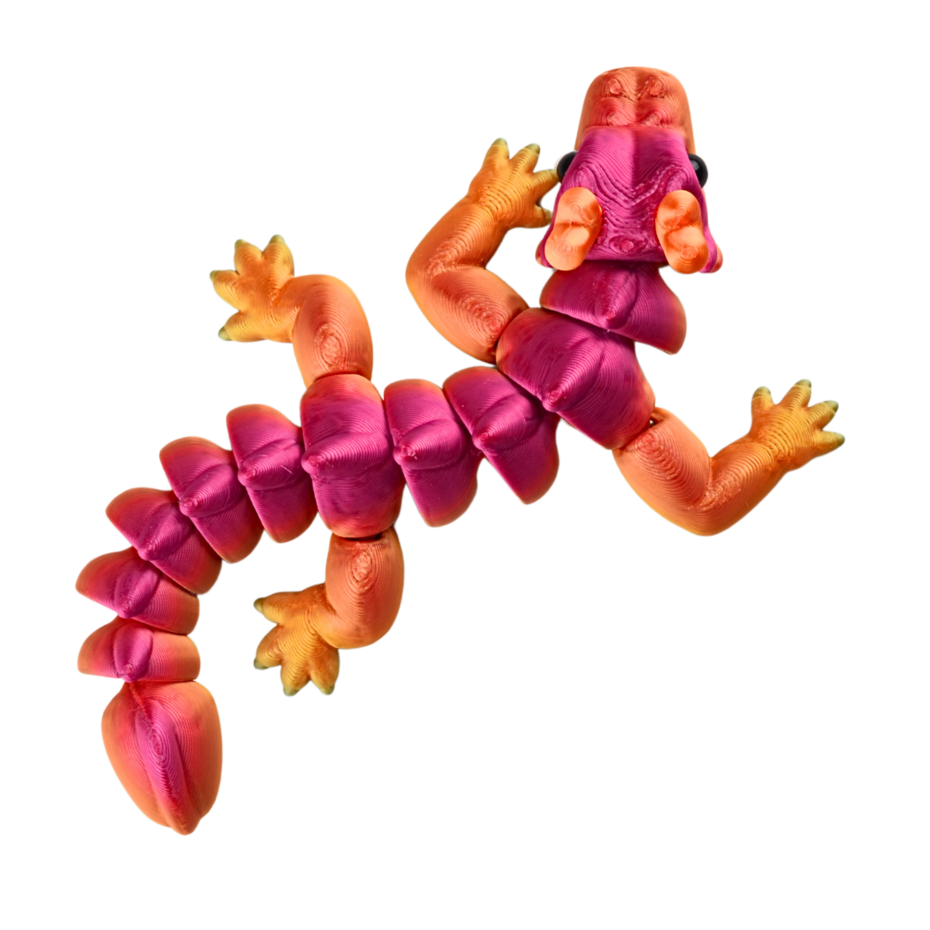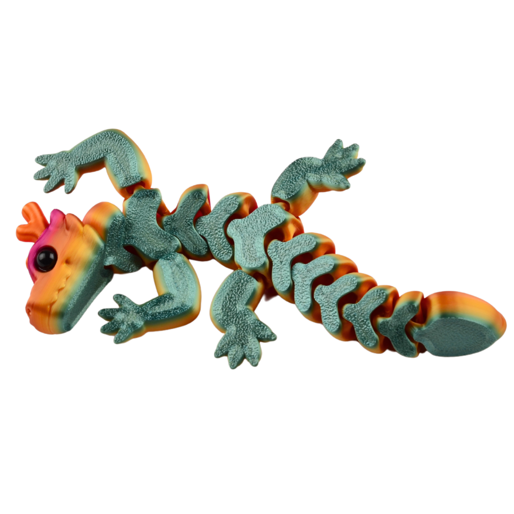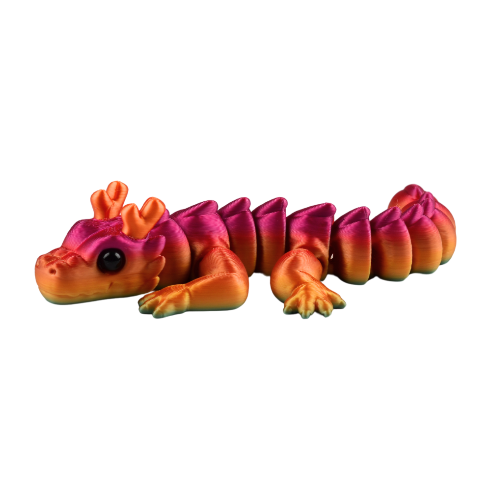 Ciekawe wzornictwo i przegubowa budowa pozwalają na świetną zabawę figurką. Figurka jest giętka, można ją wyginać na boki ze względu na przegubowe połączenie segmentów i części. Ten model ma kilka kolorów, wszystkie elementy kolorystyczne są wydrukowane. Służy jako ozdoba i zabawka sensoryczna dla dorosłych i młodzieży. Jest giętka i wspaniale grzechocze podczas zabawy.
