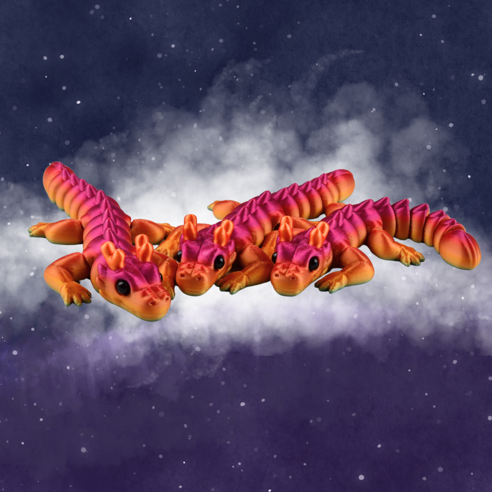 FD37 Figurka 3d drukowana fidget SMOK DRAGON ombre różowy pomarańczowy