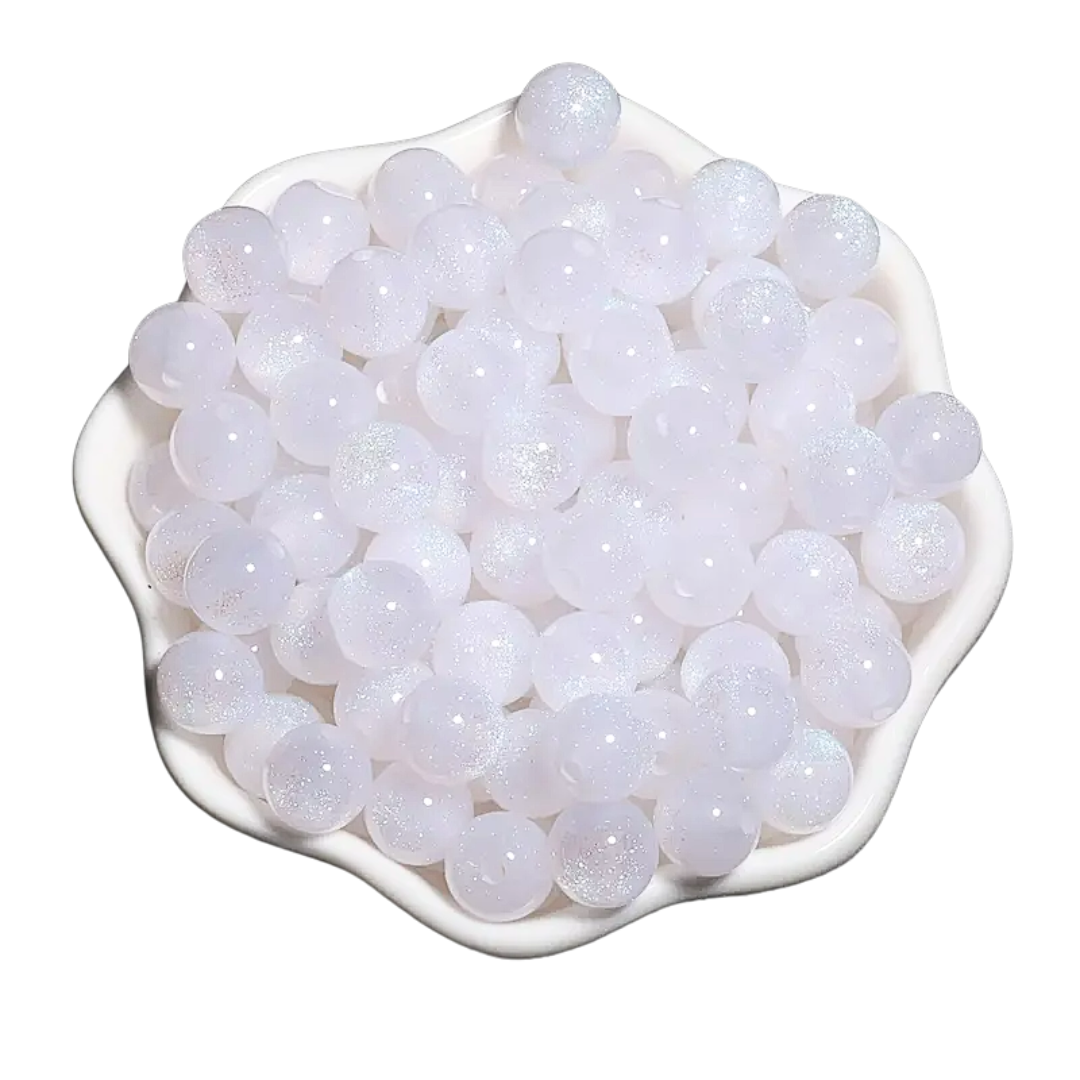 Nowość! Przepiękne koraliki GALAXY, akrylowe, mieniące, z gwiezdnym pyłkiem perłowym, który wspaniale migocze w świetle słońca, ale też w sztucznym oświetleniu. Przy każdym ruchu koraliki cudownie migoczą i mienią się jak wypełnione iskrami. Wyglądają uroczo w bransoletkach, zawieszkach i kolczykach.