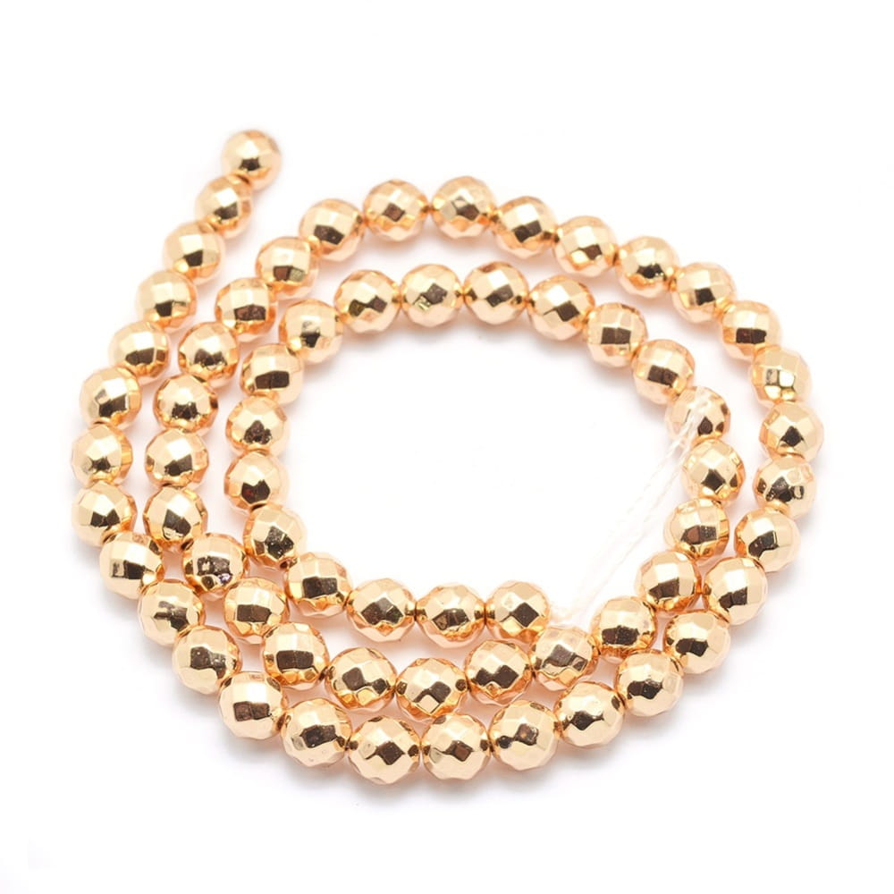 Kamień przekładka HEMATYT naturalny, galwanizowany na złoto, fasetowany 3mm. Kamień idealny do bransoletek szczęścia. Pięknie się prezentuje jako przekładka między koralikami fasetowanymi.