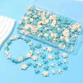 Ten zestaw zawiera 8 różnych koralików, w dwóch kolorach: turkusowym i kremowo białym.
