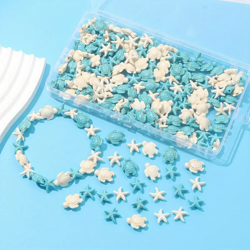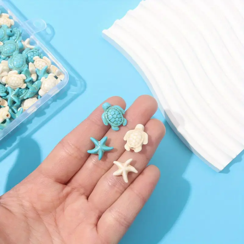 HOW4 Koraliki HOWLIT z howlitu morskie ocean miks żółw rozgwiazda 8szt