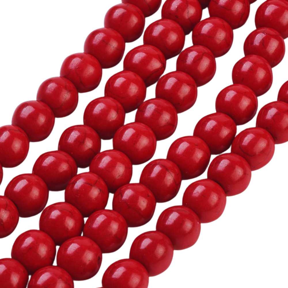 Koraliki z howlitu barwionego. Okrągłe koraliki kule kulki 8mm. Czerwone.