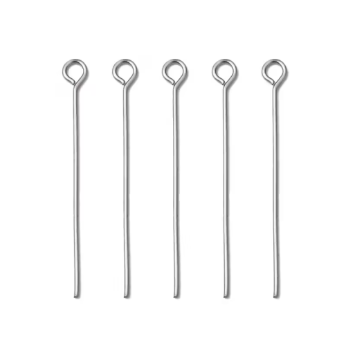 Igły jubilerskie, szpilki montażowe, haczyki z oczkiem. Wykonane ze stali nierdzewnej. Nie powodują podrażnień, nie uczulają. Można je łatwo wyginać. Świetne do wyrobu bransoletek, breloków, naszyjników, zawieszek z koralików.