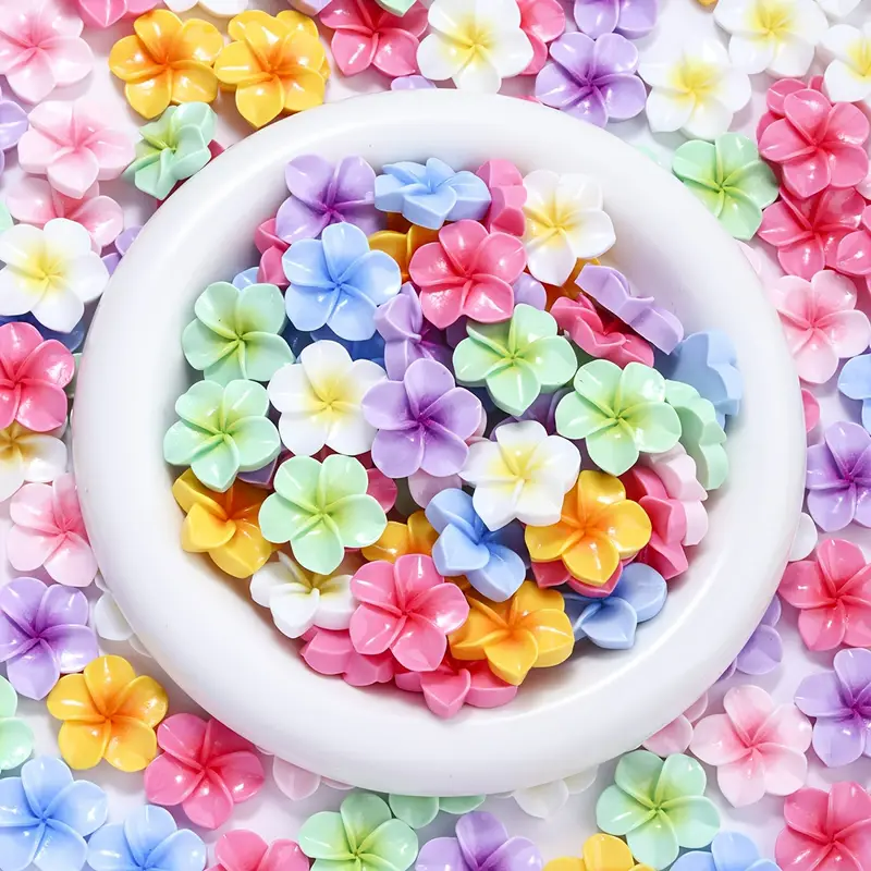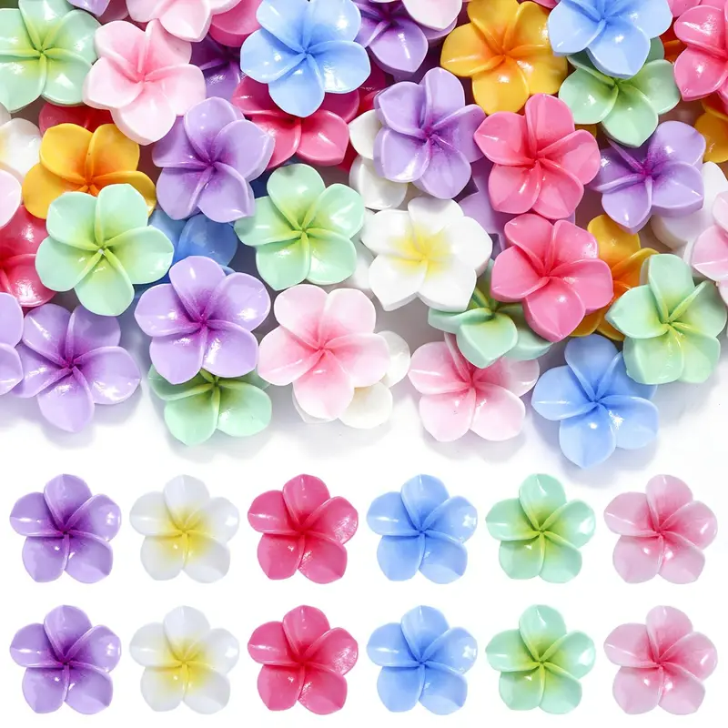 KAB8 Kaboszon z żywicy kaboszony na telefon PLUMERIA kwiat 5szt