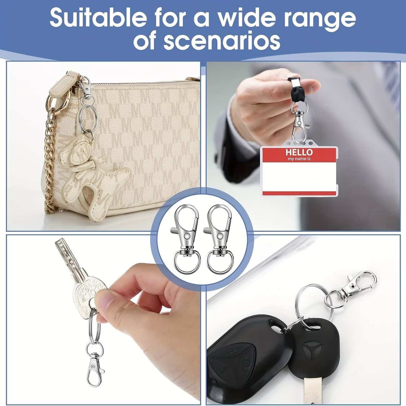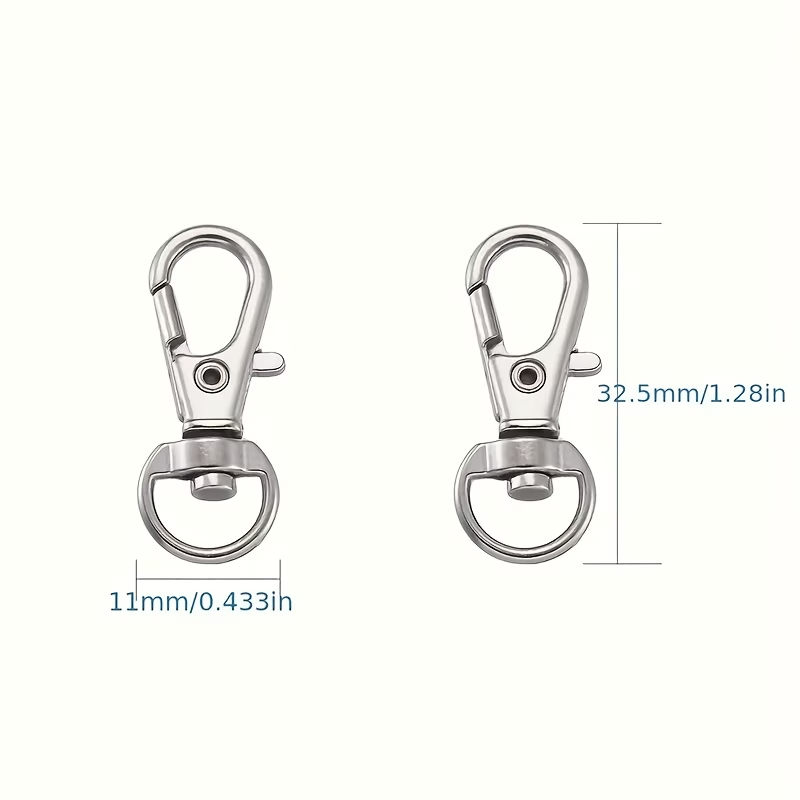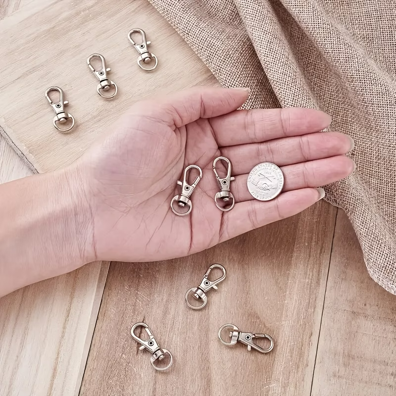 Zapięcie obrotowe, karabinek, do wyrobu breloków do kluczy i ozdobnych zawieszek do torebek i plecaków.