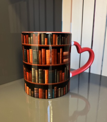 KB11 Biały kubek ceramiczny ucho serce BIBLIOTECZKA 330ml