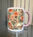 Ucho i wnętrze kubka w kolorze jasnym różowym, dwa różne wzory po każdej stronie kubka.