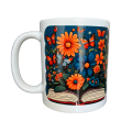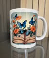 Z każdej strony inny wzór - książki, kwiaty i motylki. Na środku kwiatuszki.