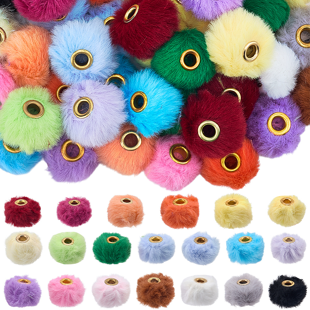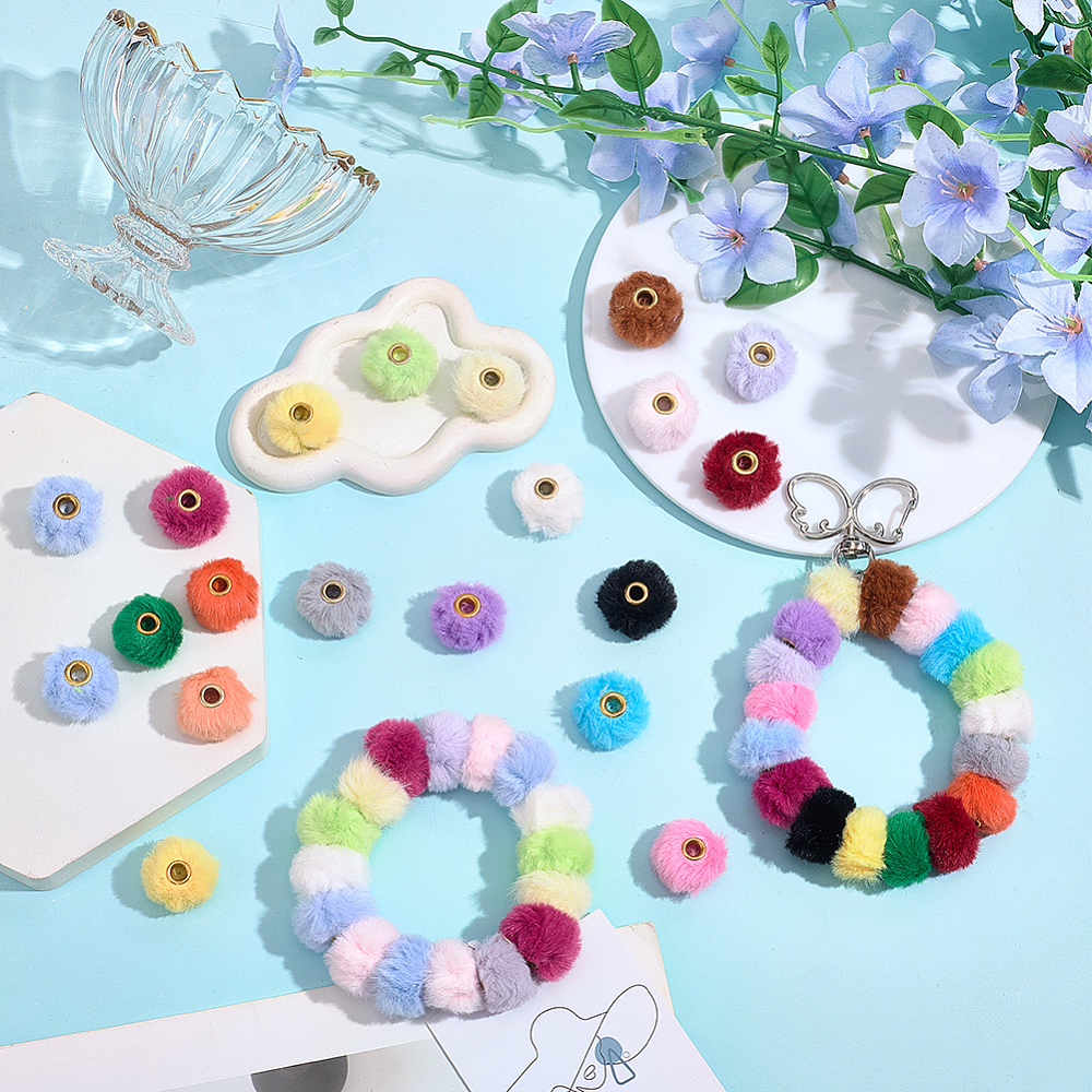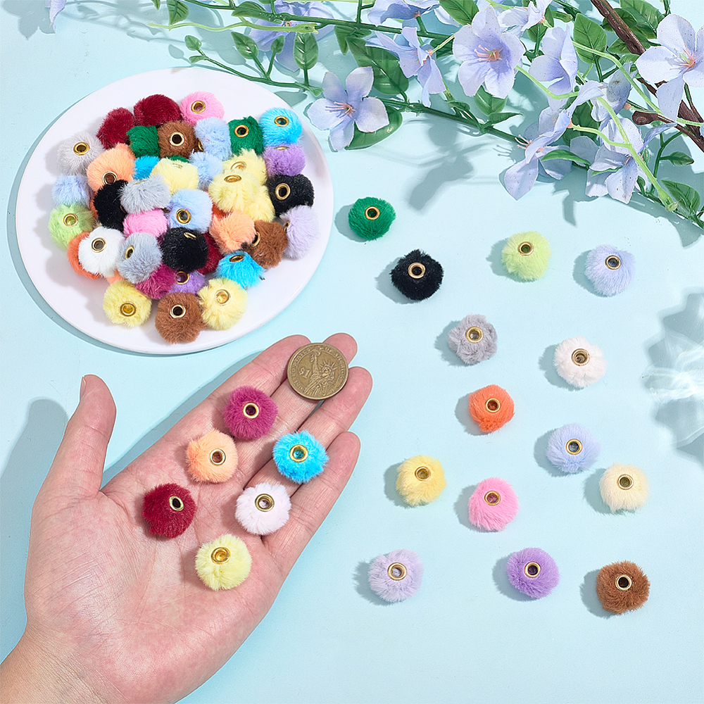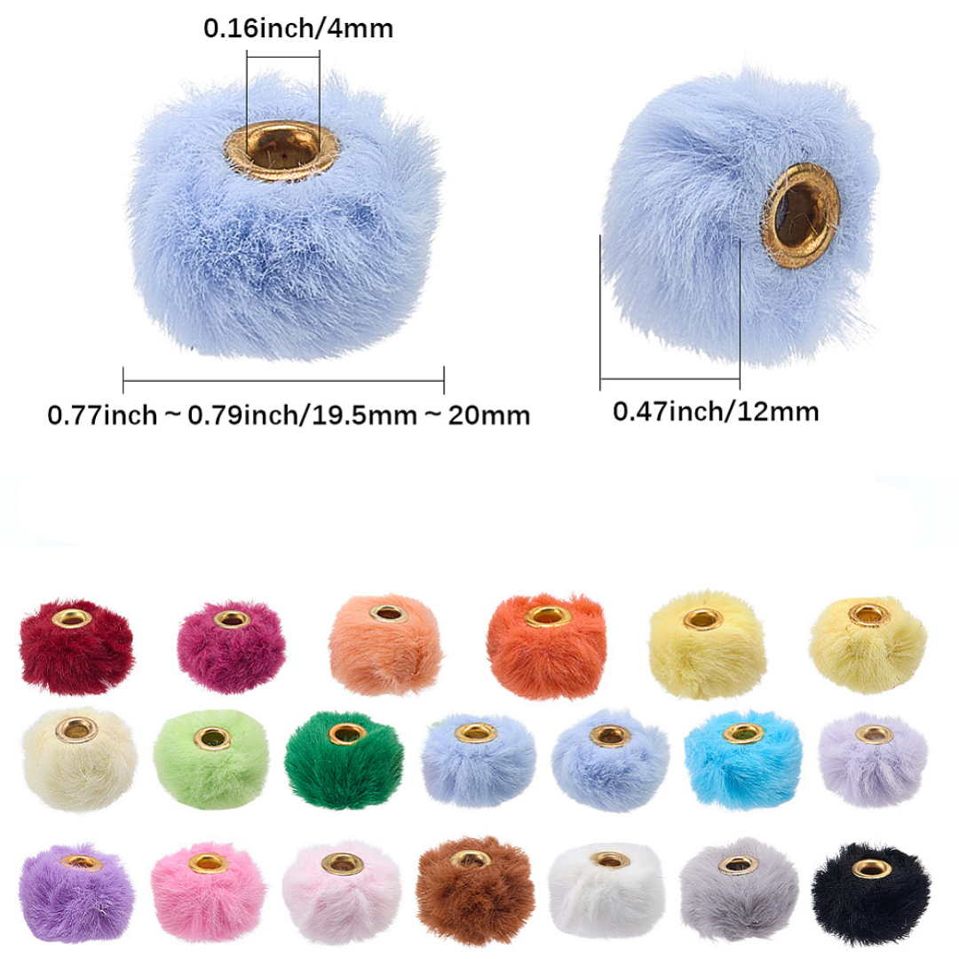 KDO1 Koraliki duży otwór POMPONIKI futerkowe FUTERKO kawaii cute mix 10szt
