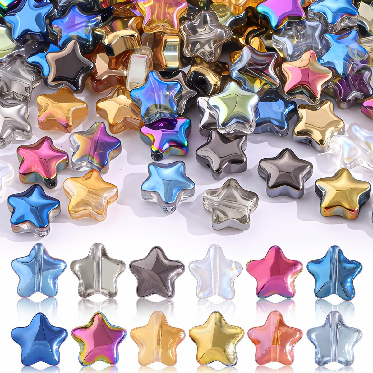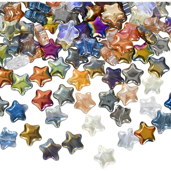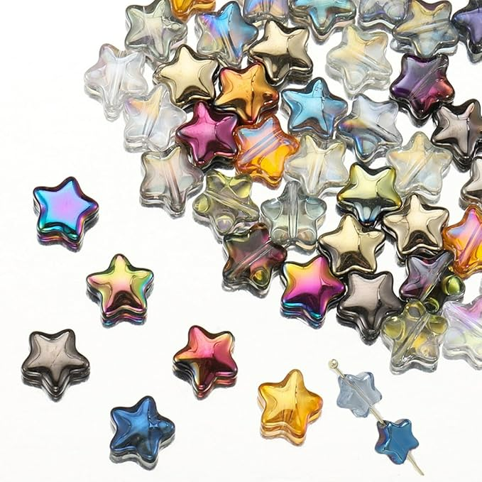 KG12 Koraliki szklane gwiazdki opalizujące 30szt kolorowe miks piękne