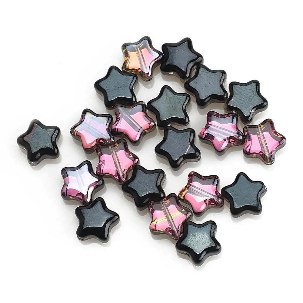 KG13 Koraliki szklane GWIAZDKI GWIAZDA opalizujące 20szt czarne fiolet