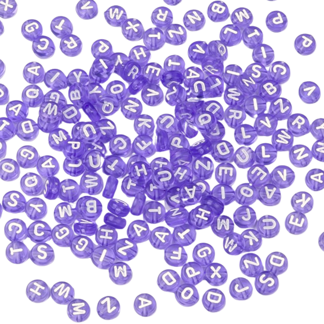 Kolor: fioletowy koralik przezroczysty i biała literka