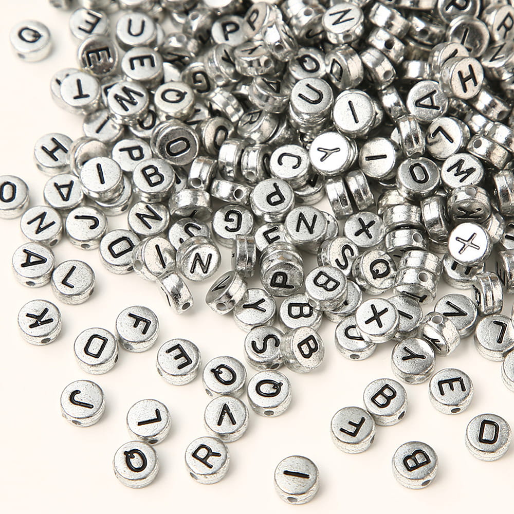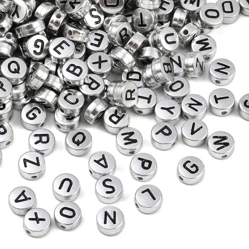 Koraliki literki kolory metaliczne, monetki 7mm do bransoletki mix 100szt.