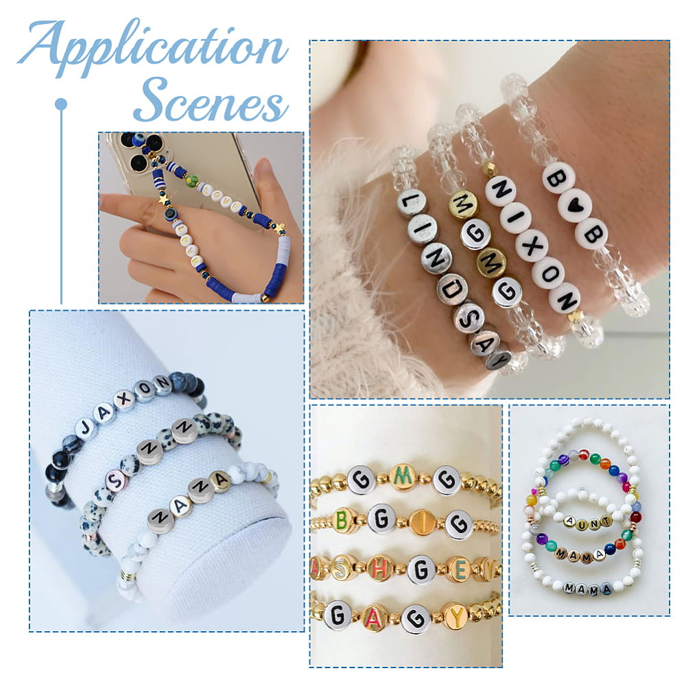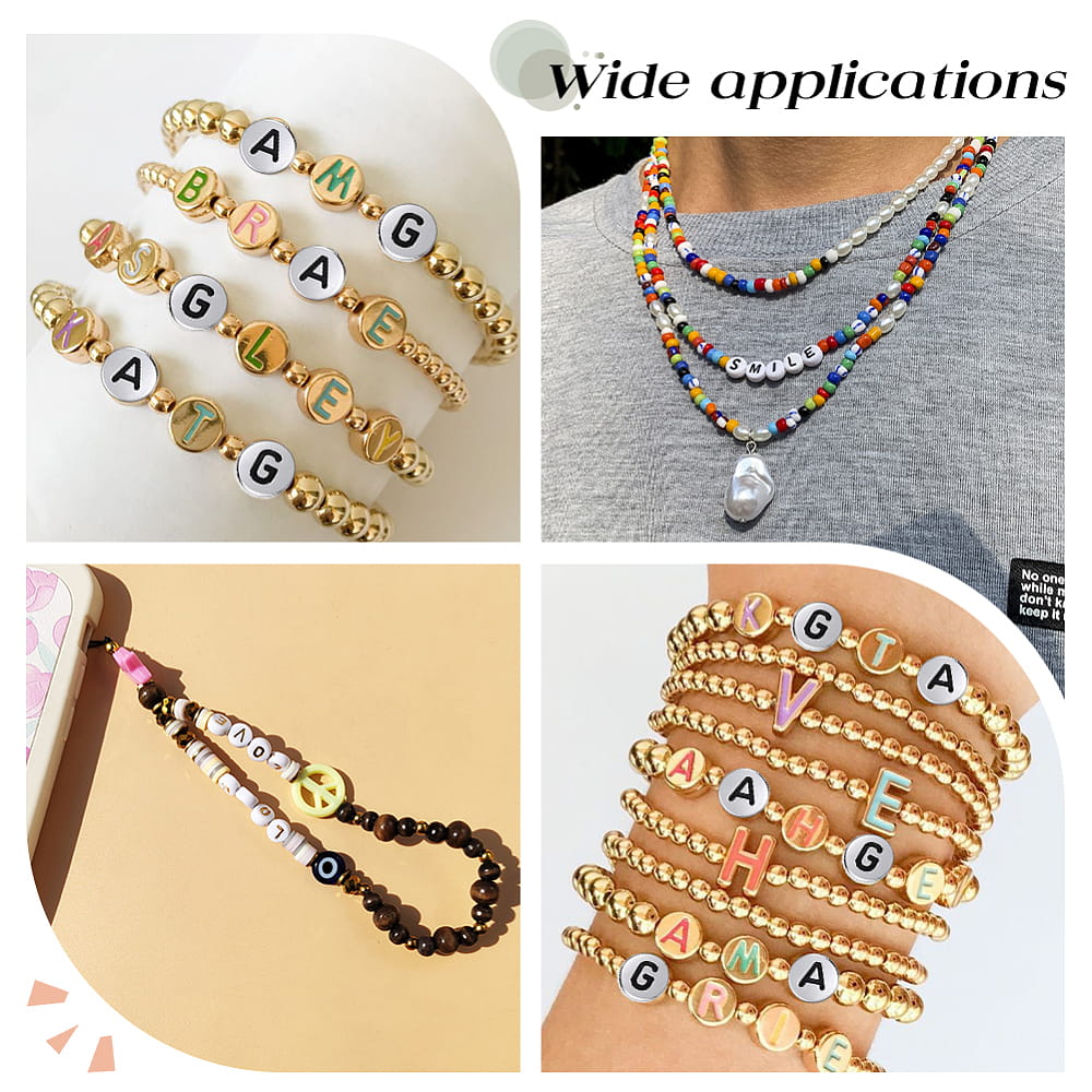 W opakowaniu foliowym znajduje się około 100 koralików, metaliczne. Idealne, jeśli robisz bransoletki i inne wyroby biżuterii hand made, zwłaszcza te personalizowane. Koraliki literki są wykonane z trwałego akrylu, nie tracą koloru, a litera jest wygrawerowana. Można je wtapiać w żywice epoksydowe, w żywicę UV. Są świetne do wykonania breloków, zawieszek i zakładek do książek. Fajnie wyglądają w bransoletkach z koralików fimo katsuki.