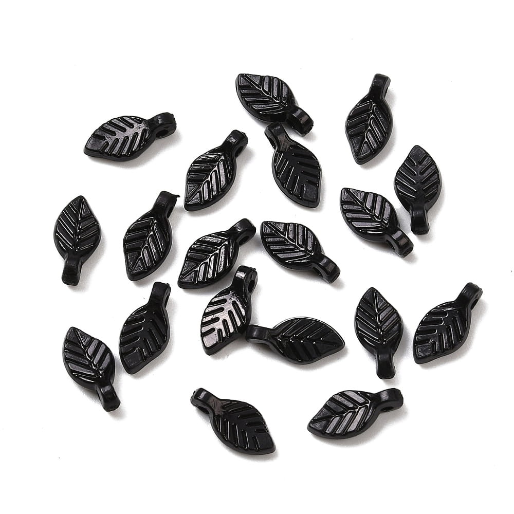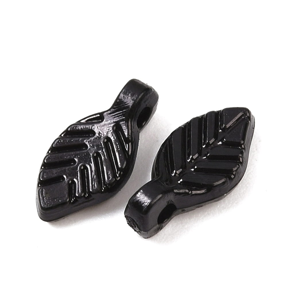 Koraliki akrylowe zawieszki - listki, liście - LISTEK. W kryjącym czarnym kolorze, kształtem imitują naturalne liście. Bardzo modne w tym sezonie jako dodatek do bransoletek i innych wyrobów hand made o tematyce roślinnej.