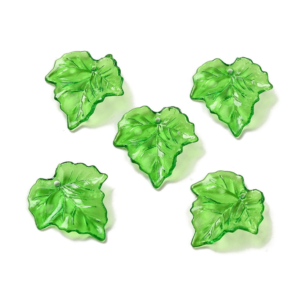 KLI25 Koraliki zawieszki akrylowe listeczki LISTKI zielone przezroczyste10szt