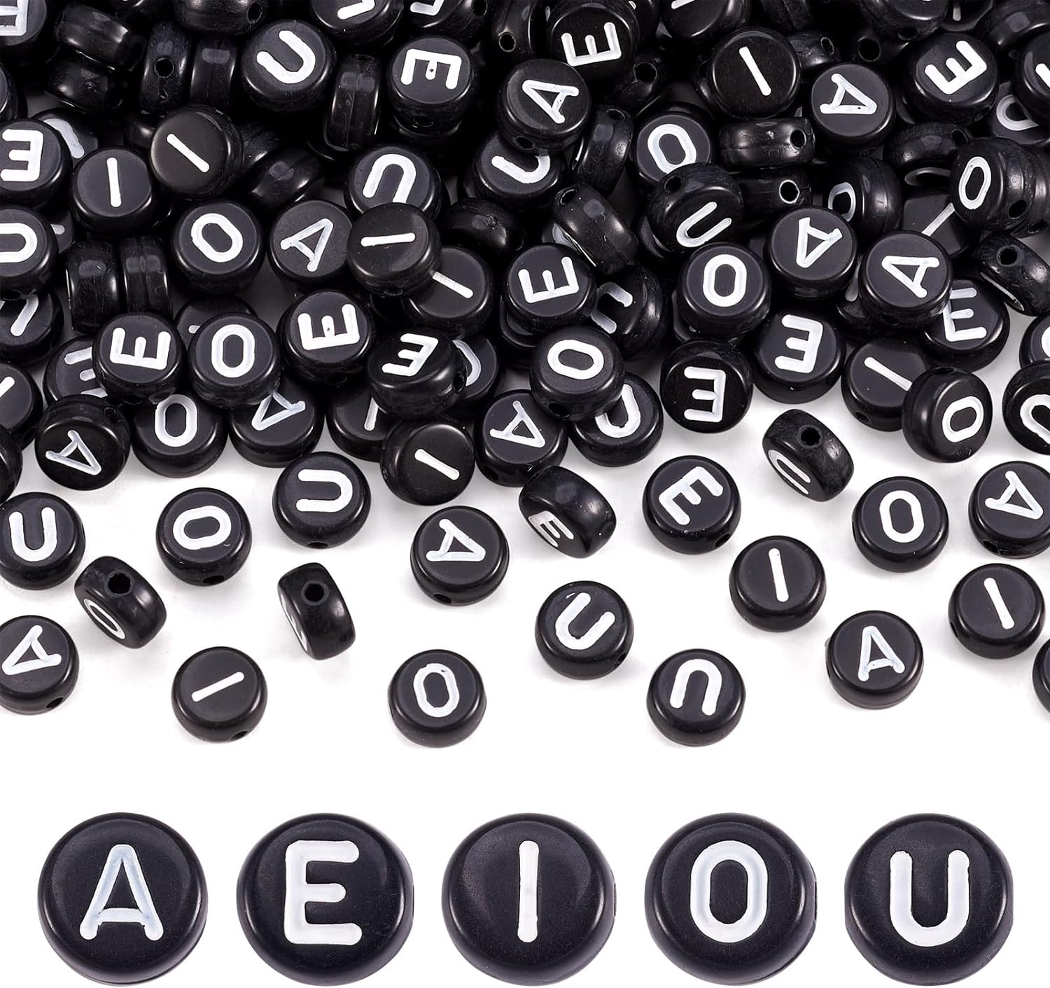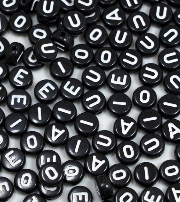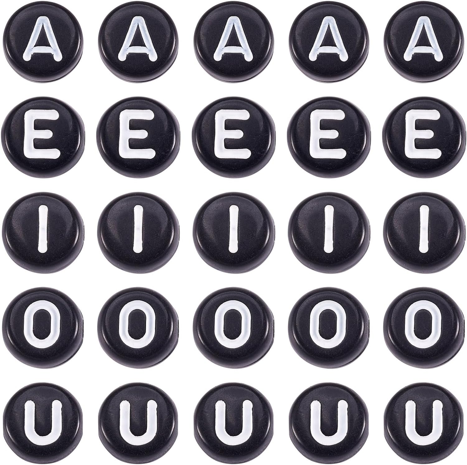 KLZ16 Koraliki literki monetki 7mm same samogłoski A E I O U czarne 300szt