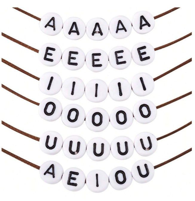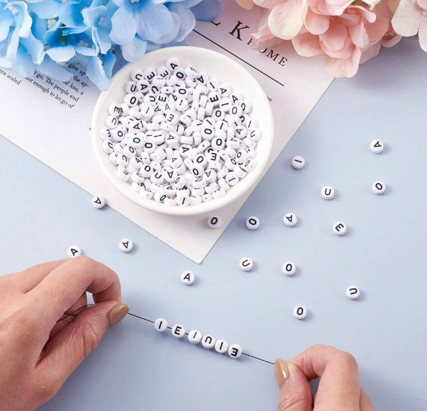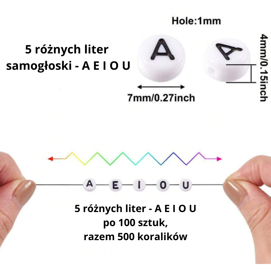 KLZ3 Koraliki literki monetki 7mm same samogłoski A E I O U zestaw 500szt