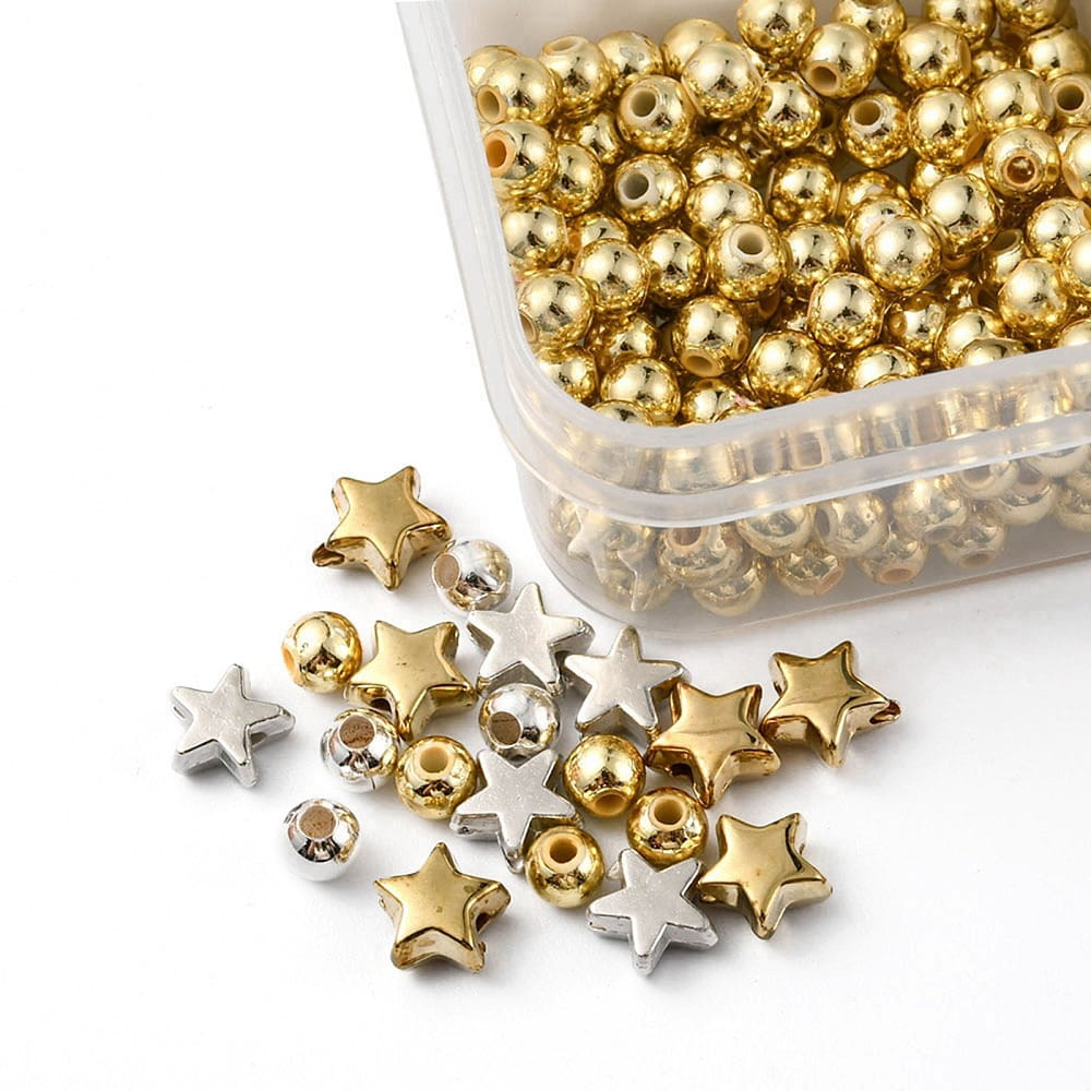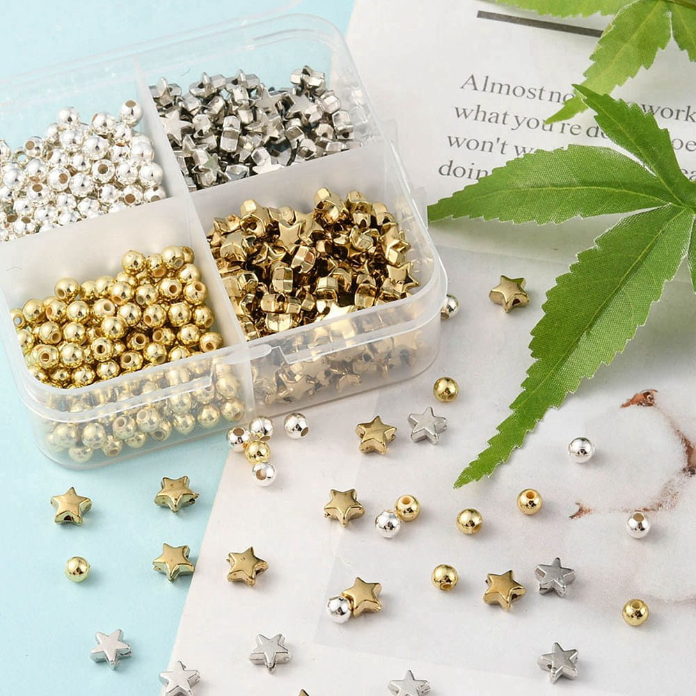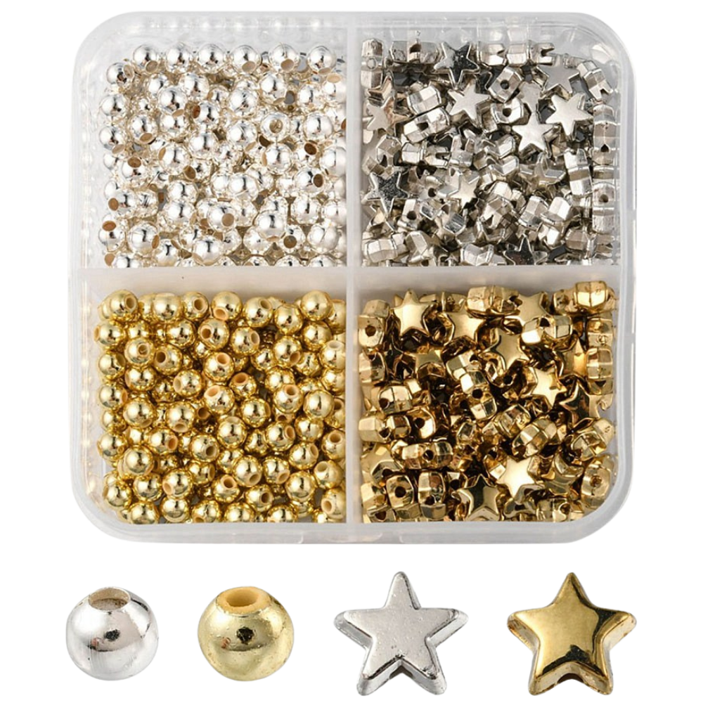 KLZ40 Zestaw koraliki przekładki gwiazdki złote i srebrne 500szt