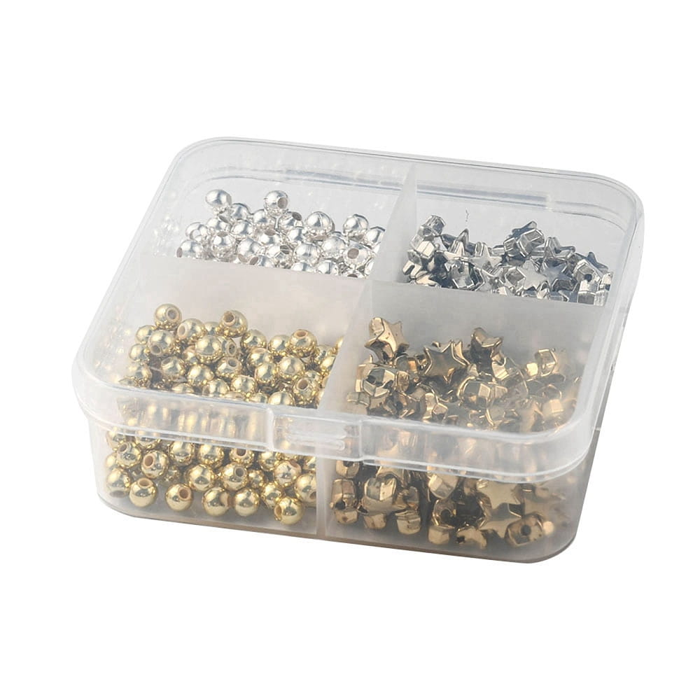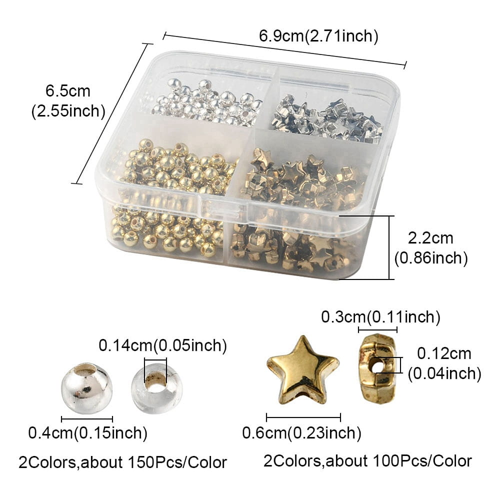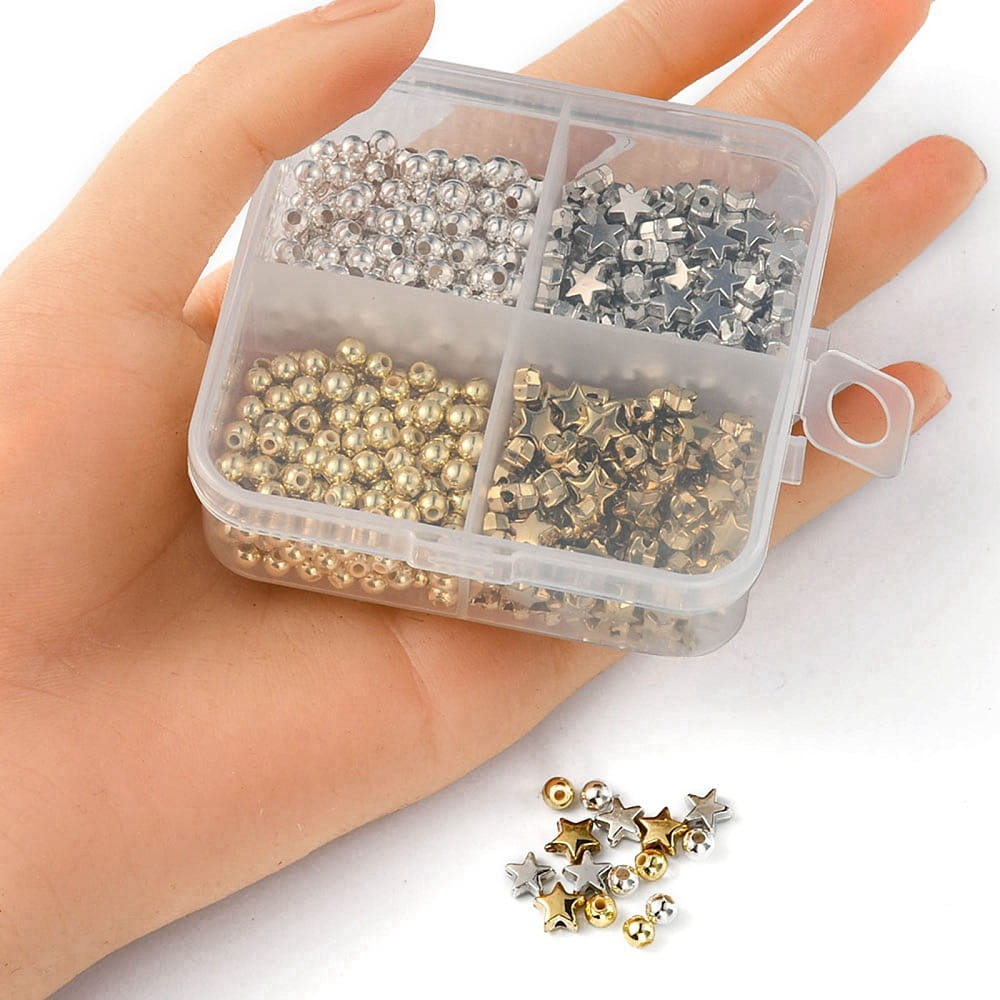 Zestaw koraliki przekładki gwiazdki złote i srebrne w plastikowym pudełku (organizator). Bardzo ładnie wykonane, idealne do wyrobu bransoletek.