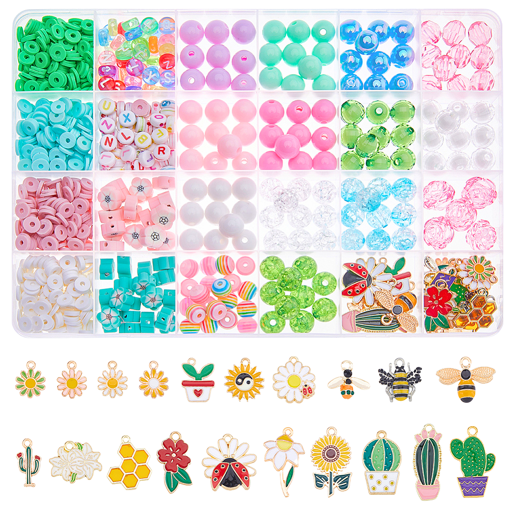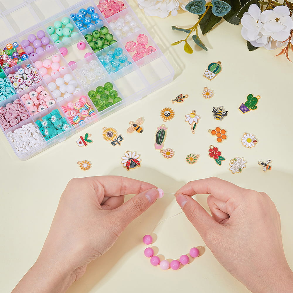 Zestaw koralików mix różne kolory i rozmiary, monetki, fimo katsuki + piękne zawieszki. W opakowaniu znajduje się łącznie aż około 940 sztuk koralików i zawieszek. Idealne do DIY, również do tworzenia biżuterii. Koraliki znajdują się w plastikowej kasetce z 24 przegródkami. Ten zestaw pozwoli na stworzenie wielu pięknych bransoletek, co można zobaczyć na zdjęciu przykładowym.