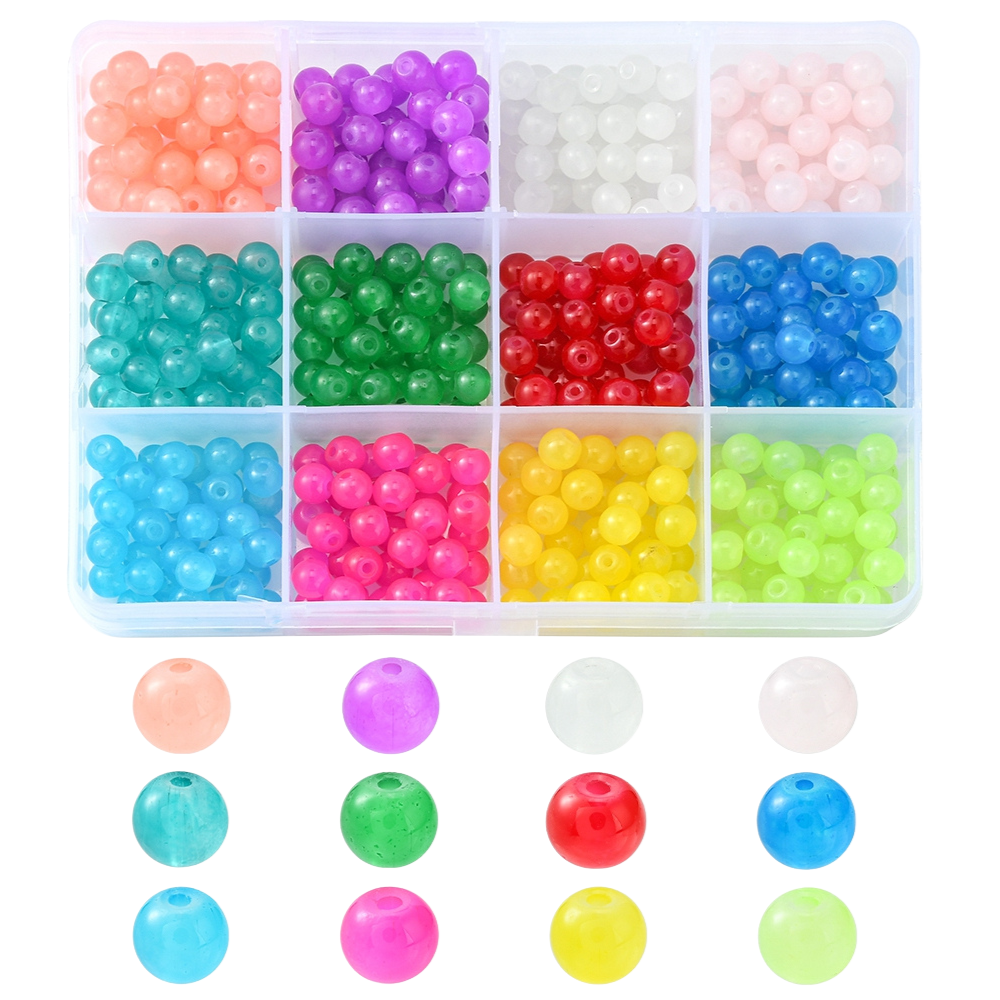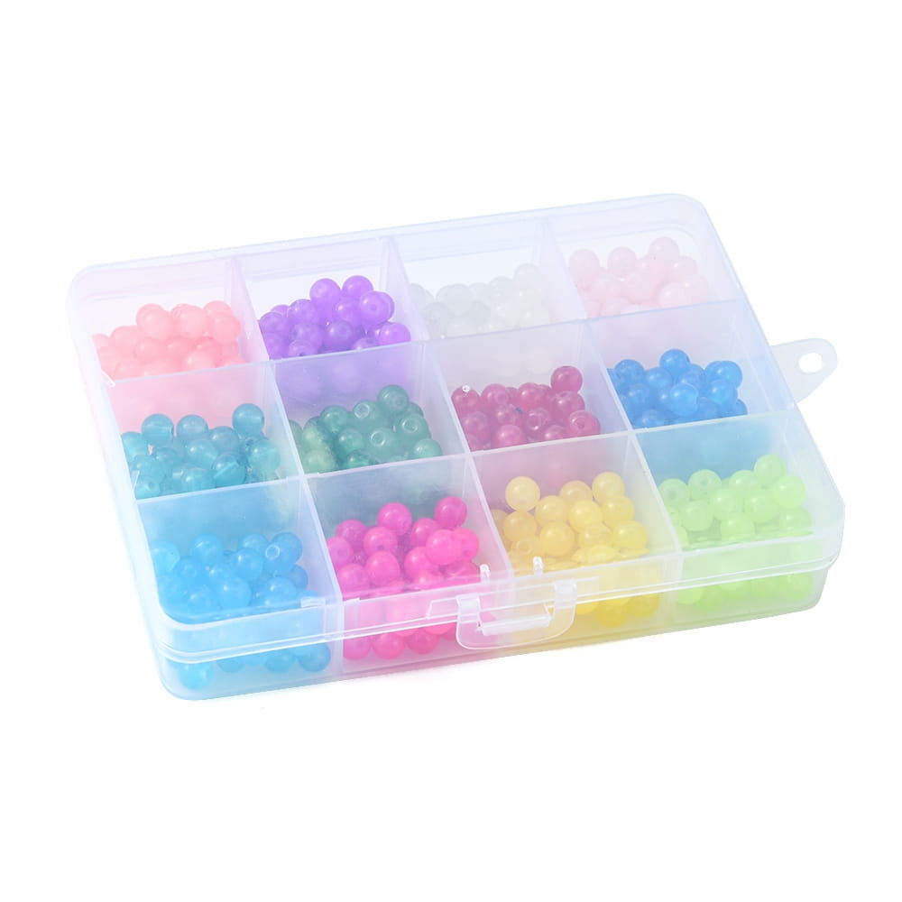Zestaw koralików okrągłych szklanych kule kulki 6.5mm 12 kolorów koralików w organizerze.