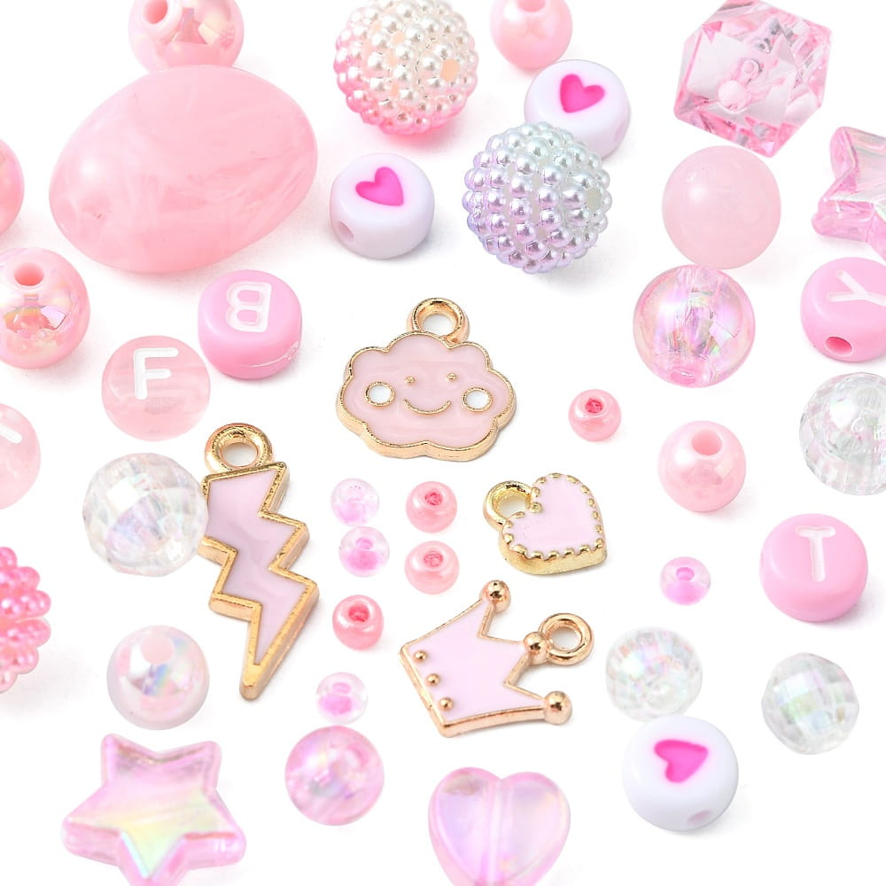 KLZ57 Duży zestaw koralików akrylowych PINK KAWAII RÓŻOWY do biżuterii
