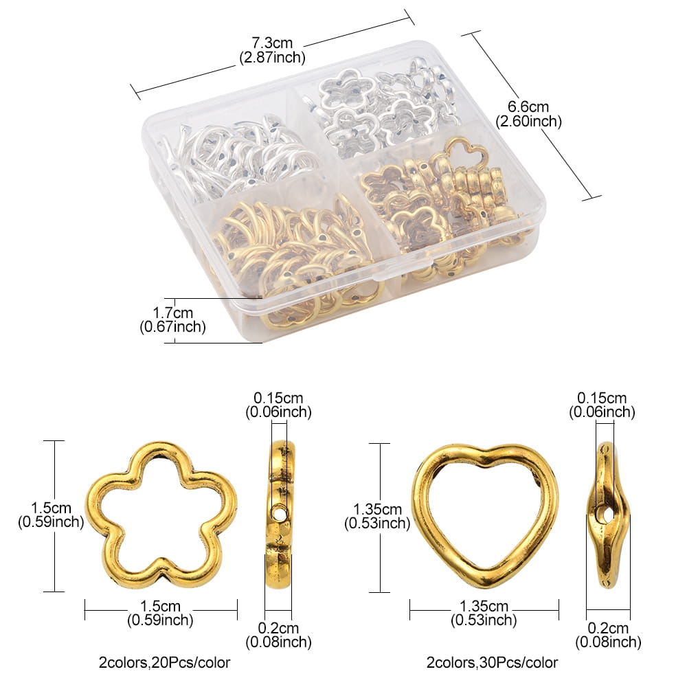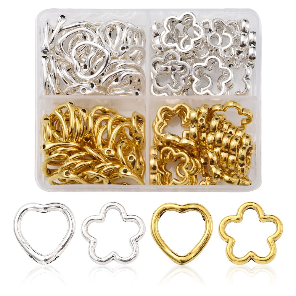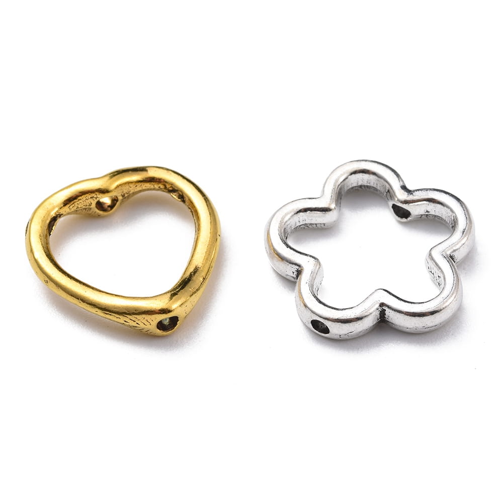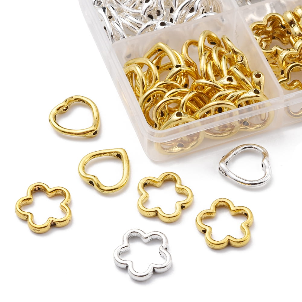 KLZ60 Zestaw zawieszki ramki metalowe na koraliki serca kwiatuszki 100szt