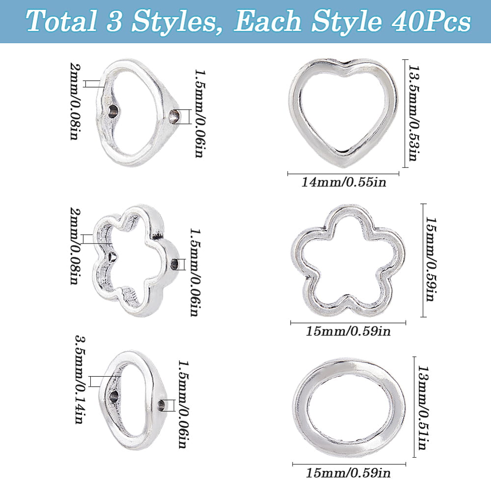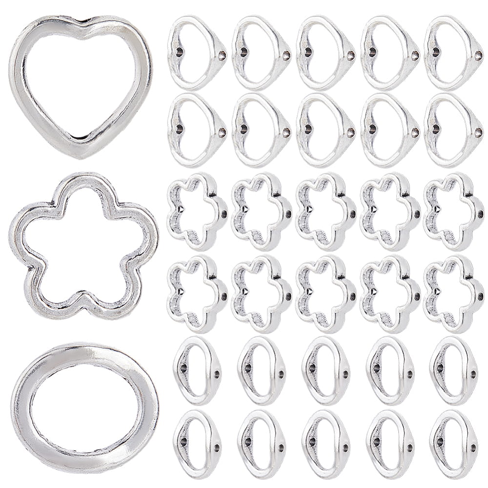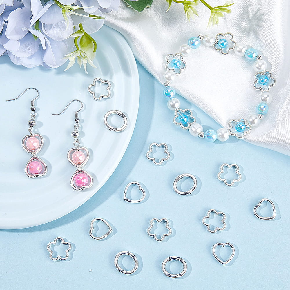 KLZ63 Zestaw zawieszki ramki metalowe na koraliki serca kwiatuszki owal 120szt