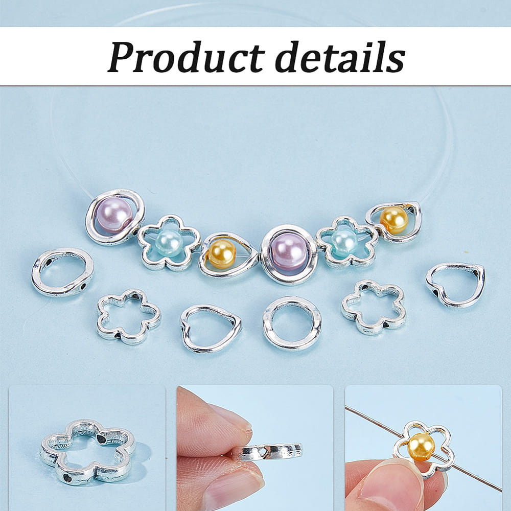 Świetne do ozdobienia piórnika, do breloków, torebek, zakładek do książki, do bransoletek i innych wyrobów biżuteryjnych. Zapakowane praktyczny organizer. Idealne do wykonania pary kolczyków lub breloczków. Otwór przechodzi w dwóch miejscach przekładki, dlatego wewnątrz można dać dowolny koralik o średnicy (wysokości) około 5-6 mm. Bardzo ładnie to wtedy wygląda. Idealne do szpilek igieł jubilerskich.