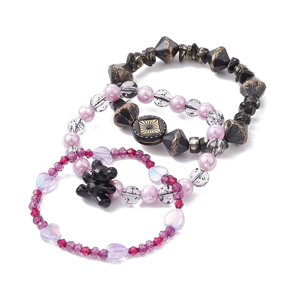 2) Koraliki akrylowe: bicone, bryłki, misiu, kule, kulki, monetki z ramkami, z brokatem, opalizujące, fasetowane, serduszka, kwiaty przekładki, róże, dyski
