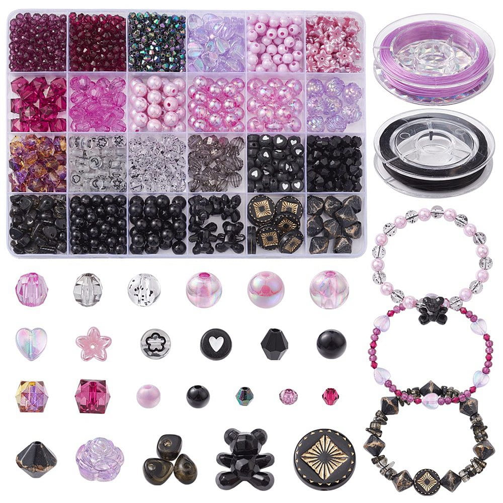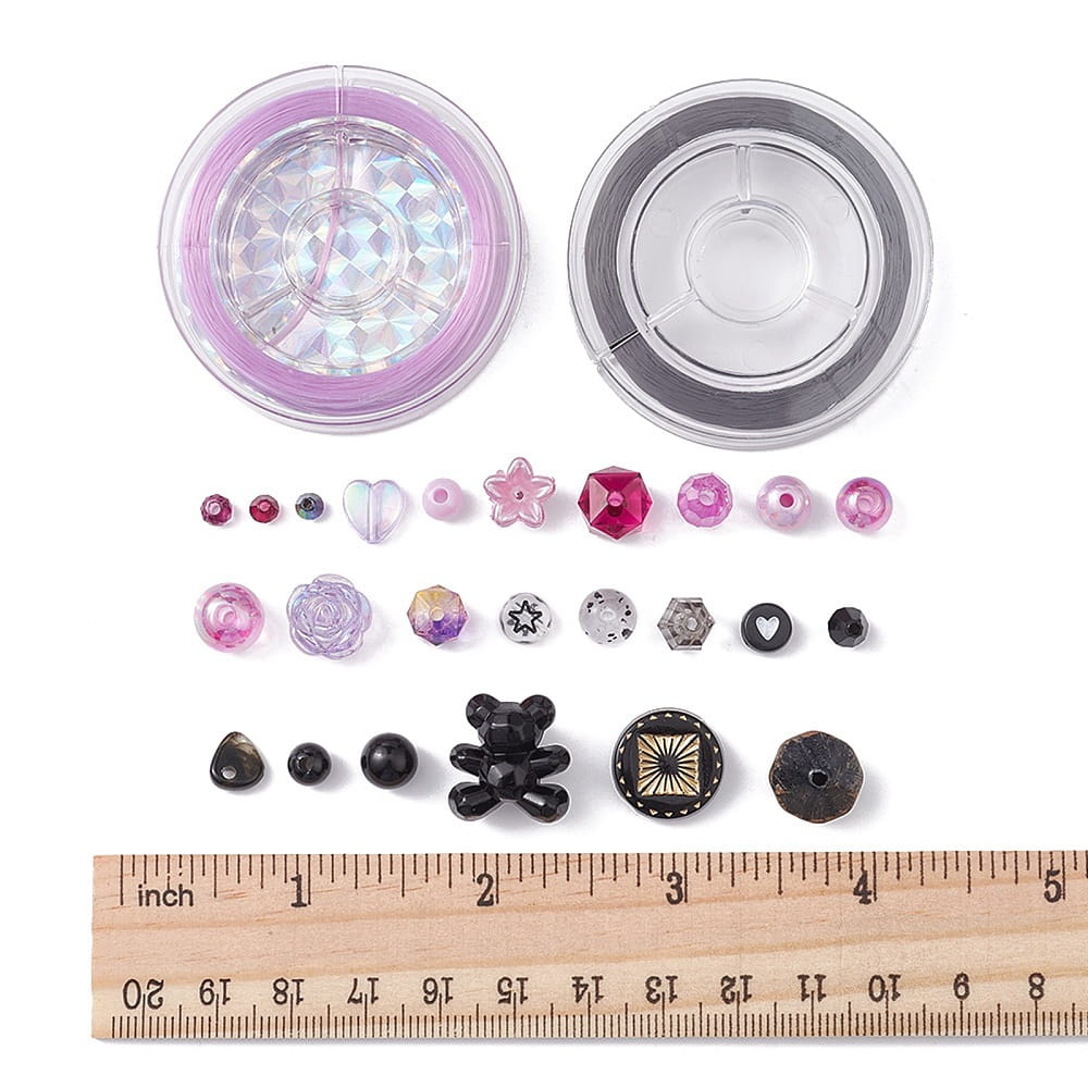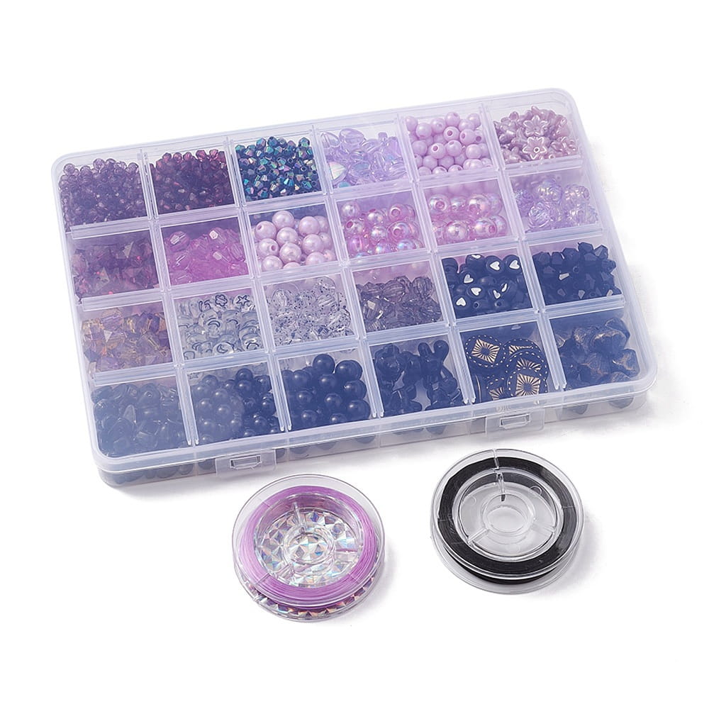 KLZ65 MEGA zestaw MIKS FIOLET CZERŃ koraliki akrylowe fioletowe do bransoletek 1360szt