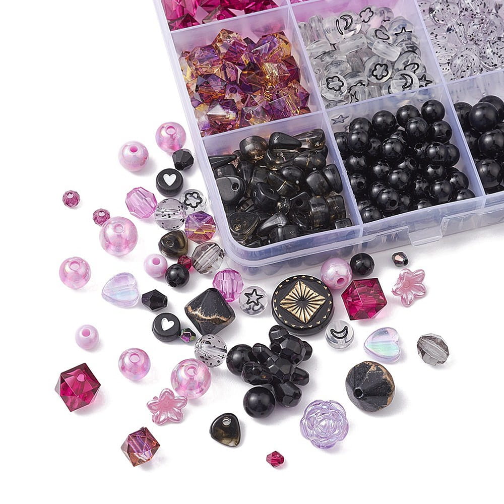 Mega zestaw MIKS koraliki akrylowe, wielokolorowe w tonacji fiolet i czarny, MIX kształtów i rozmiarów. Duży zestaw w plastikowym organizerze. 1360 sztuk.