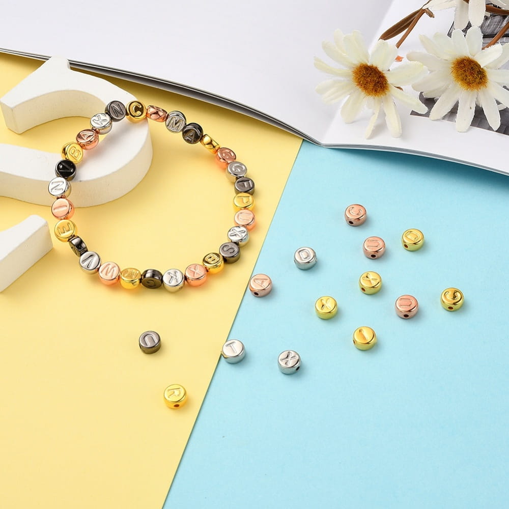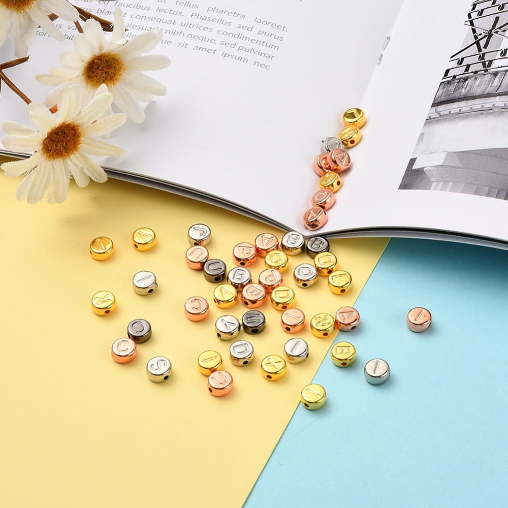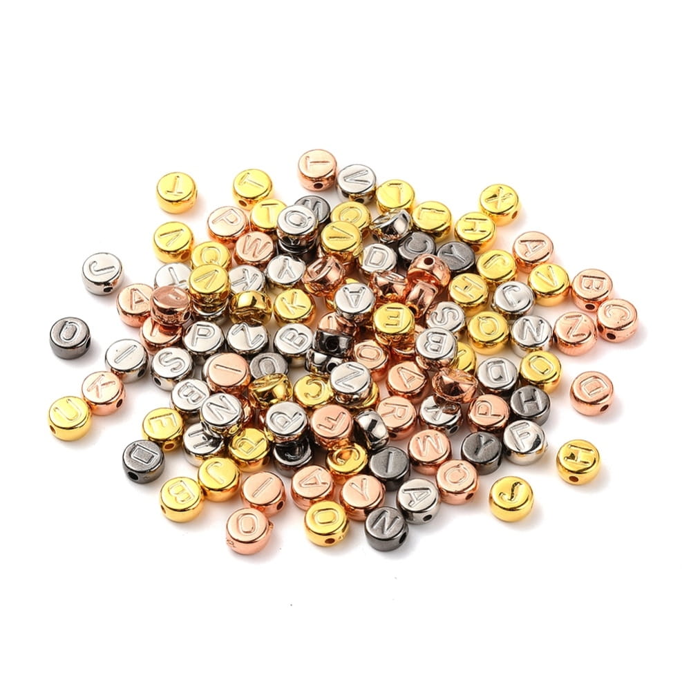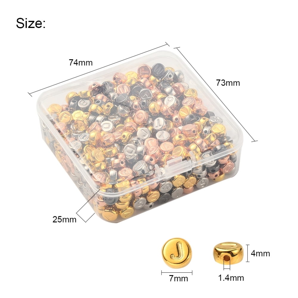 Koraliki literki metaliczne metalizowane CCB monetki 7mm do bransoletki mix aż 500 sztuk. Zestaw w praktycznej kasecie plastikowej.