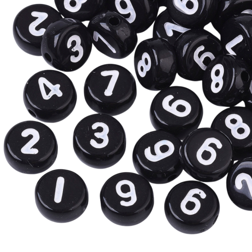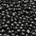 KLZ80 Koraliki literki monetki 7mm cyfry cyferki czarne od 0 do 9 100sztuk