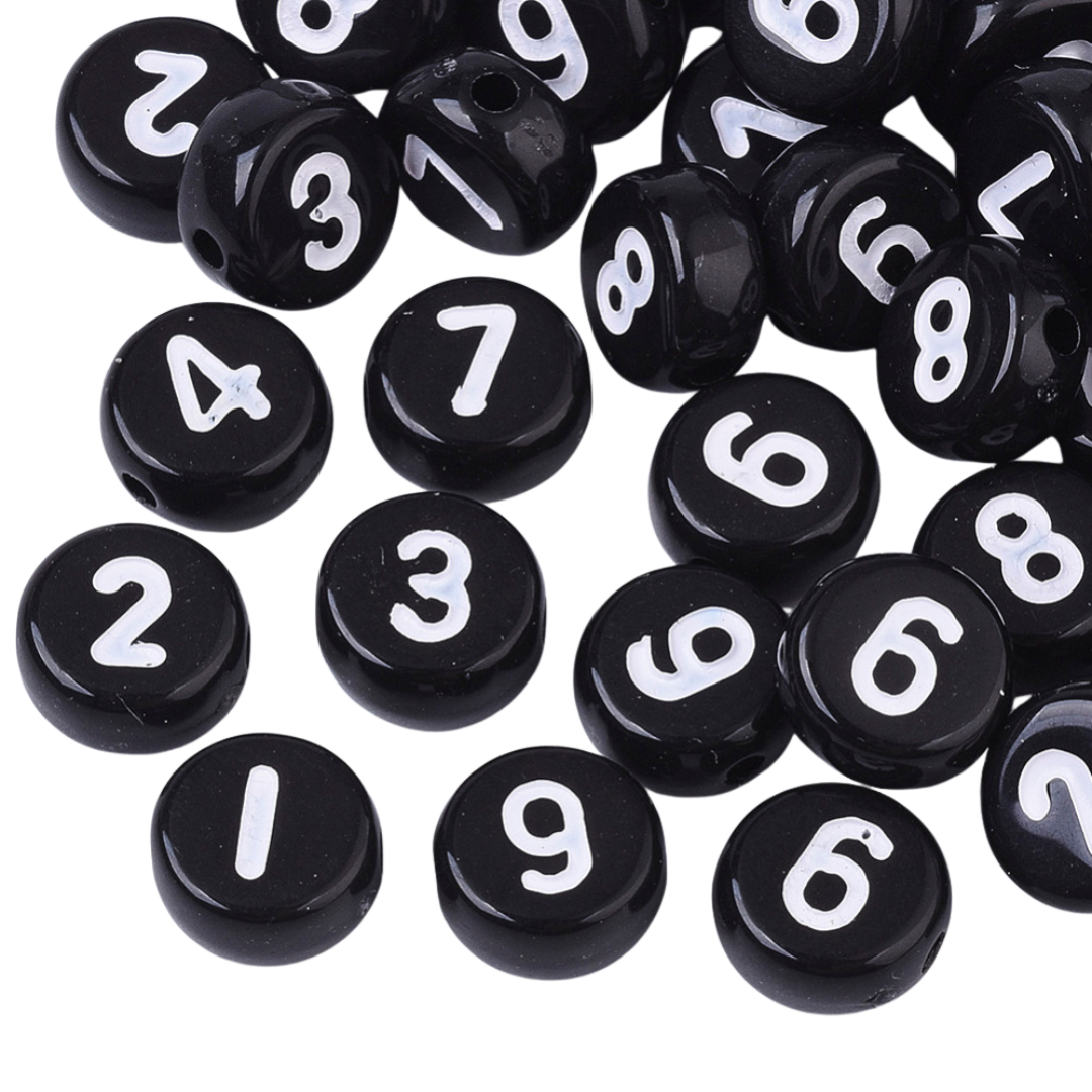 Tylko cyfry, razem 100 koralików. W zbiorczym opakowaniu foliowym, różne cyfry. Idealne, jeśli robisz bransoletki i inne wyroby biżuterii hand made, zwłaszcza te personalizowane. Koraliki literki są wykonane z trwałego akrylu, nie tracą koloru, a litera jest wygrawerowana. Można je wtapiać w żywice epoksydowe, w żywicę UV. Są świetne do wykonania breloków, zawieszek i zakładek do książek. Fajnie wyglądają w bransoletkach z koralików fimo katsuki.