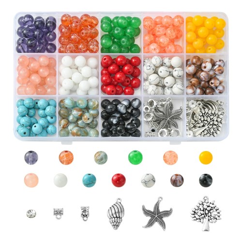 KLZ81 MEGA zestaw KORALIKI w kasecie akrylowe szklane howlit zawieszki 296szt