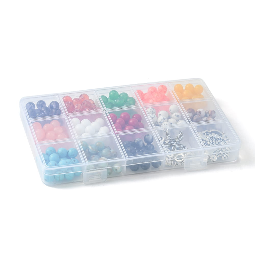 Mega zestaw MIKS koraliki akrylowe, szklane, z howlitu, wielokolorowe w tonacji wielobarwnej. Duży zestaw w plastikowym organizerze. 296 sztuk łącznie.