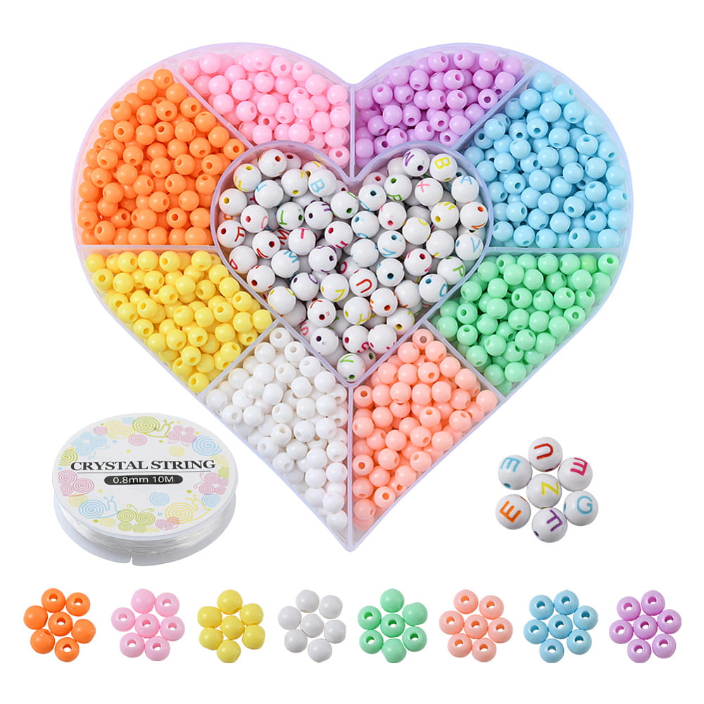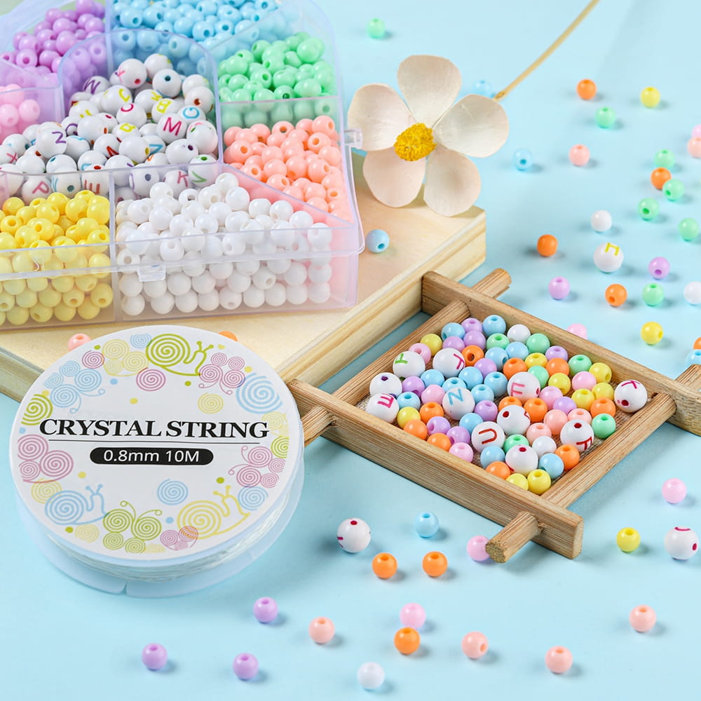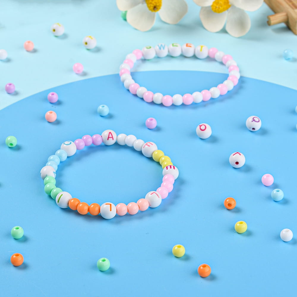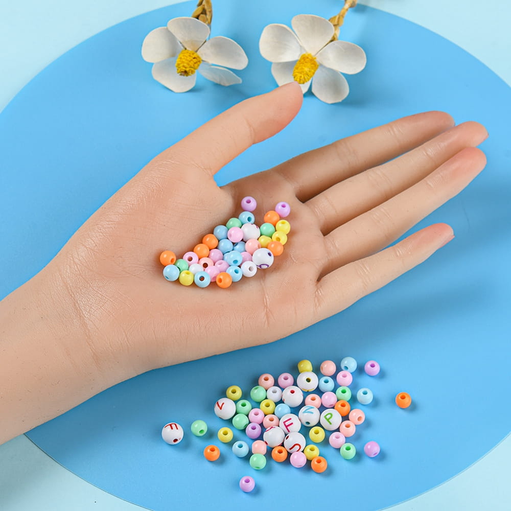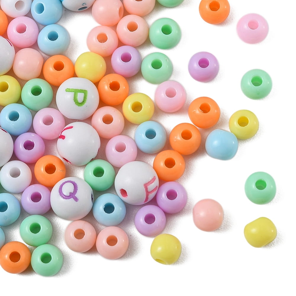 2) Koraliki akrylowe kulki, w rozmiarach 6mm i 8mm (z literkami)
