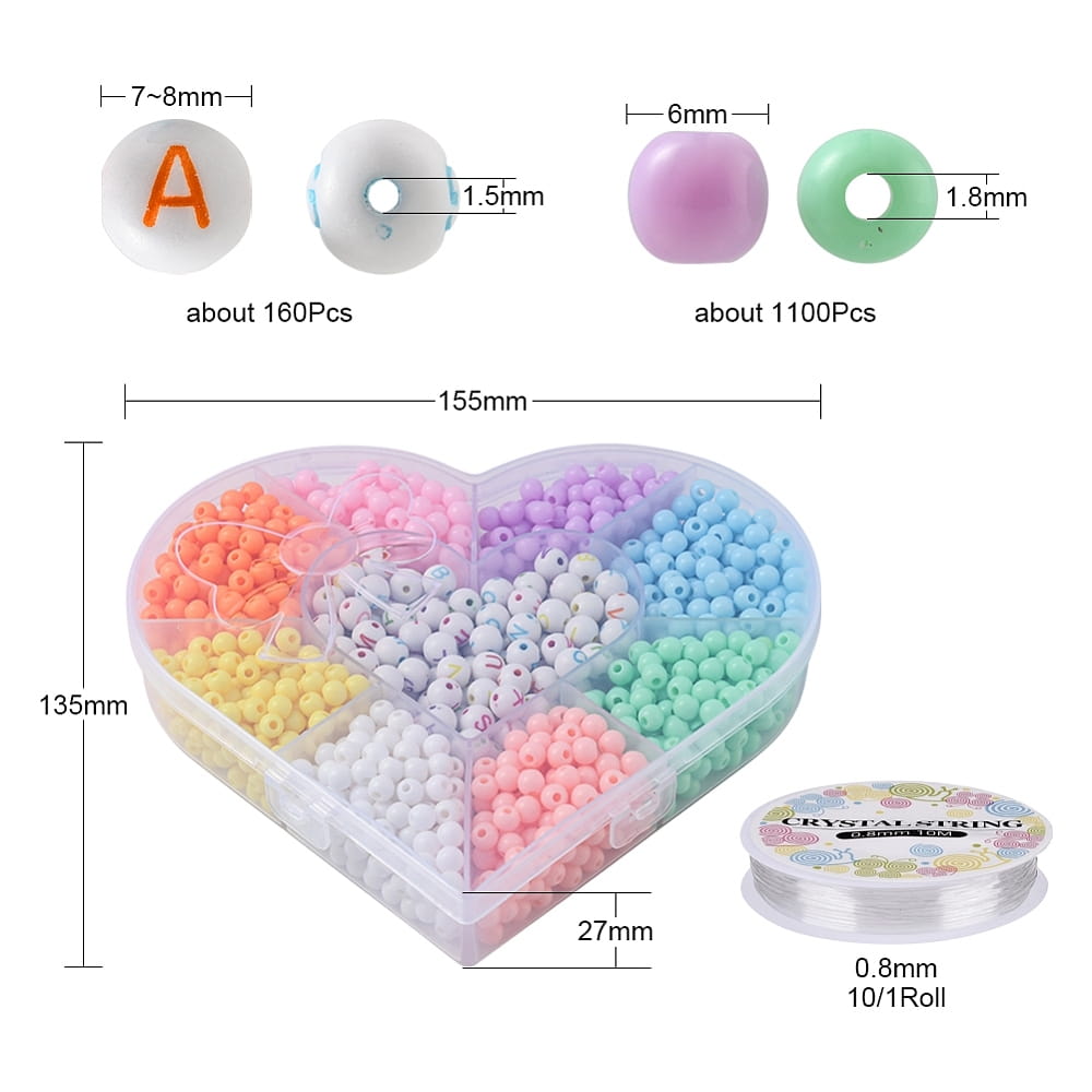 Mega zestaw MIKS koraliki akrylowe, kulki 6mm i kulki z literkami 8mm oraz żyłka. Duży zestaw w plastikowym organizerze. 1260 sztuk łącznie!